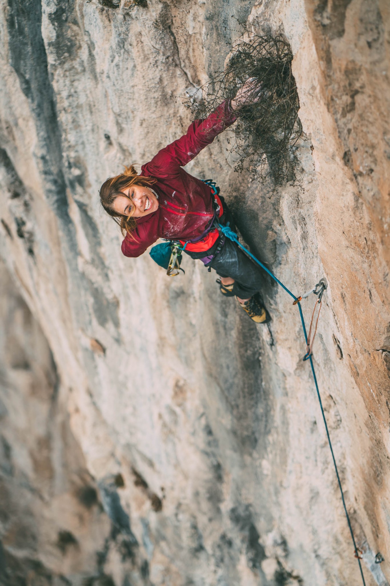 Her and her family started practicing yoga at twelve years old and she has kept up a disciplined practice since the beginning. She carries her mat with her to every destination she visits and supplements her avid climbing with her dedicated practice.