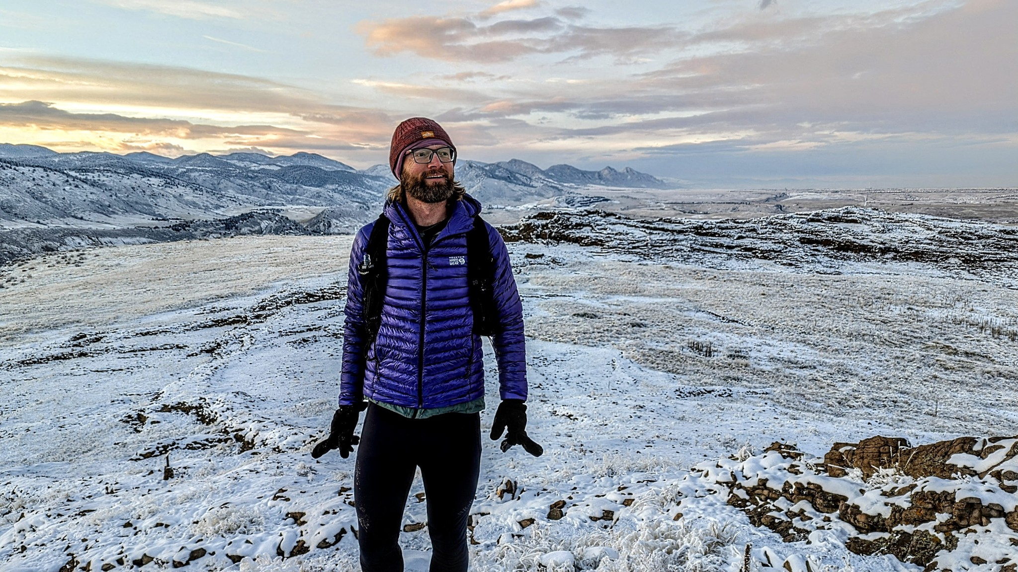 Testing the Ghost Whisperer in our outdoor lab. Super light down jackets can be perfect for runs in the cold. Credit: Sam Schild