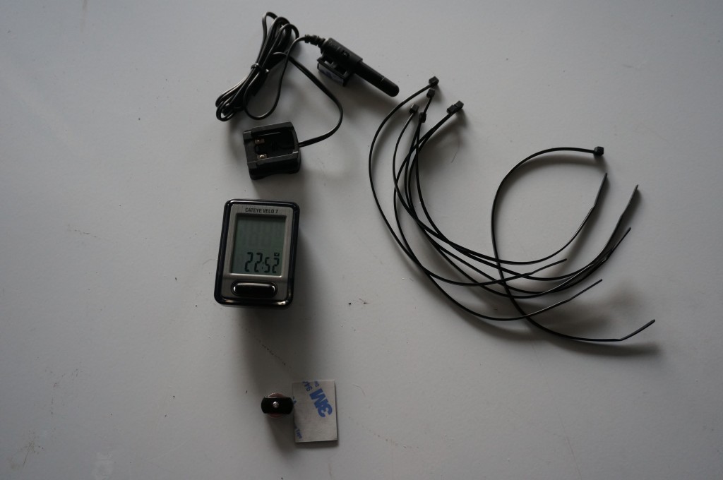 The Velo 7 is more difficult to set-up than other computers we tested such as the wireless Cateye Strada Slim. This is primarily due to its use of a wired sensor rather than a wireless sensor. The sensor must be attached to the fork leg using zip ties, and then the wire is wrapped around the fork leg and up the front brake cable. The mounting base is then attached to the handlebars using zip ties.