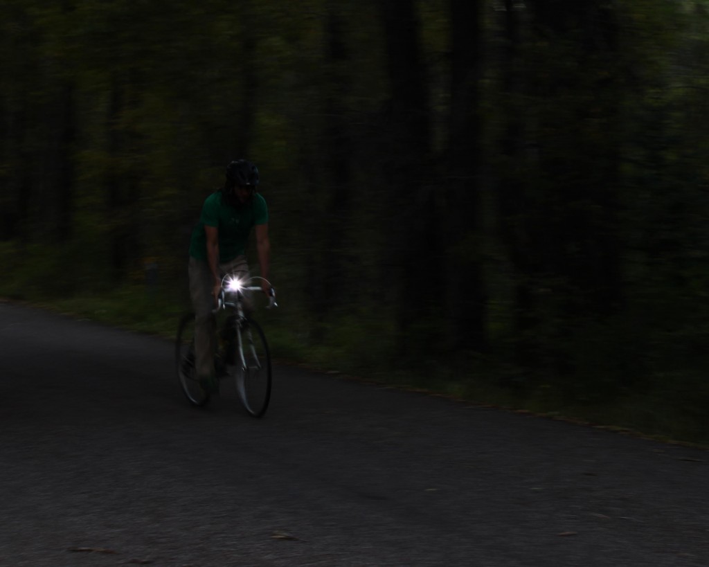 Whether your goal is to illuminate the road ahead, or simply to be seen by oncoming traffic, a bright, wide, evenly lit beam is ideal. One unique feature specific to this light is the zooming ability between flood and spot light settings. At its widest flood setting, we only measure the beam distance at 35-meters, or about 115-feet, while the most narrow setting measured an astronomical 215-meters, or just over 706-feet. Yet, we still scored this light with a 2 out of 10 in brightness because on either end of the spectrum, the light performed poorly in the field. Here is a comparison with our Editors' Choice winning Niterider Lumina 750, which shines a measured 180 meters, about 35 meters less than the Allen. However, you can see that the Niterider allows for better sight of the path in front.