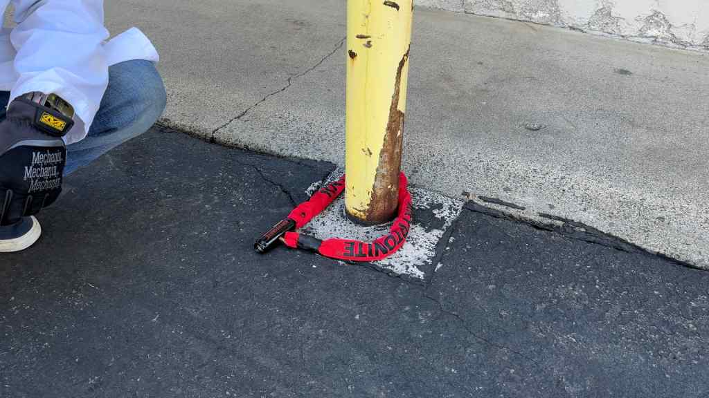 The Keeper 785 carries a Sold Secure Bronze rating and a 5/10 on Kryptonite's scale. It's a massive upgrade over a cable lock, which can be cut in seconds. The Keeper isn't impervious to heavier tools, but it will require significantly more time/effort to breach. Compared to the Kryptonite Evolution Chain, with 10mm links, the Keeper's 7mm links can be cut much faster, but thieves will still need to cut both sides of the link to free the lock, which took us 14 seconds with an angle grinder.