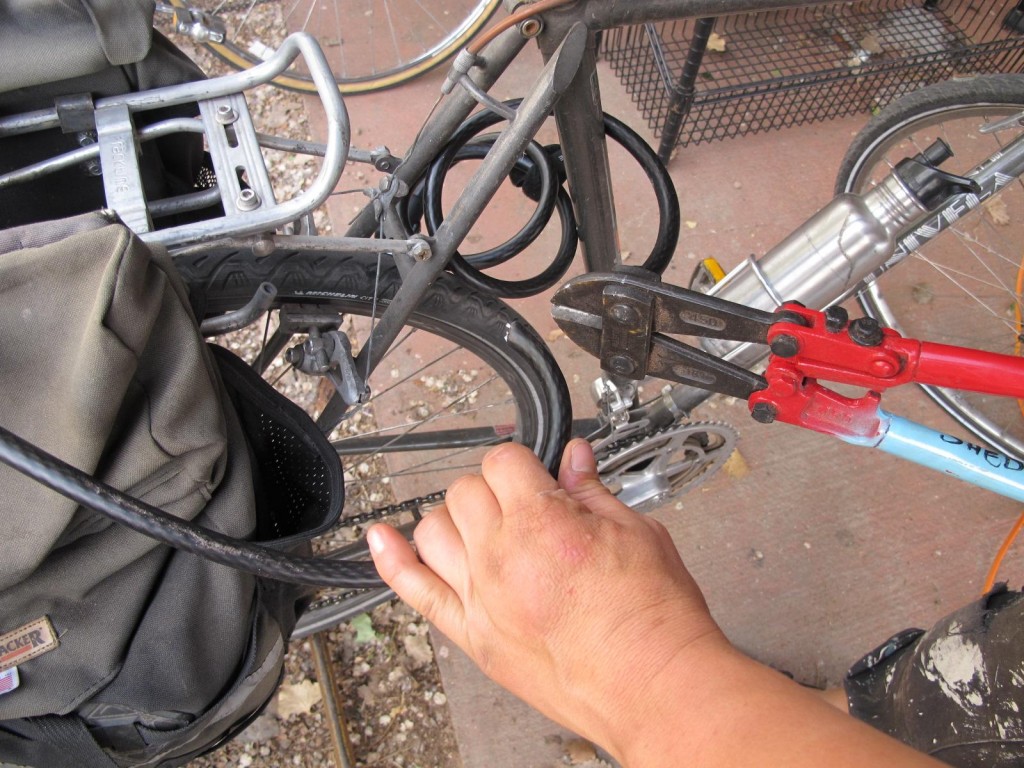 Kryptonite gives the KryptoFlex 1218 a security rating of 2 out of 10. We managed to cut through the KryptoFlex with a pair of cheap bolt cutters in about 2 seconds. Handheld wire snips could break through in 5 seconds. We smashed the locking mechanism apart in about 20 seconds with a hammer.