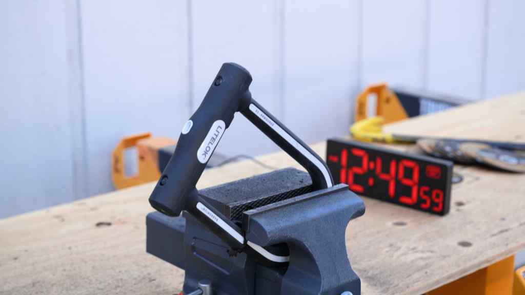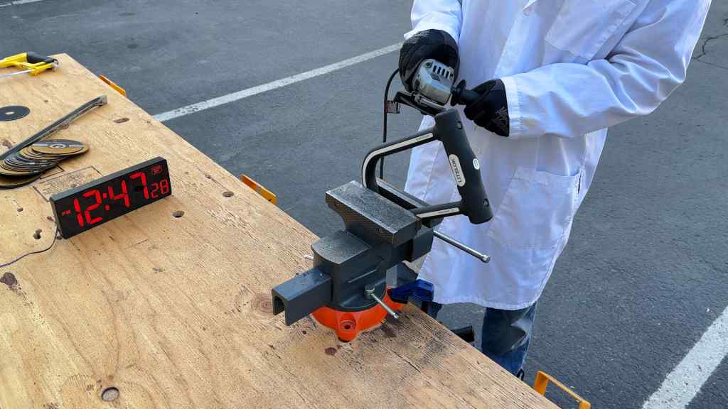 The Litelok X1 essentially redefined our expectations for high-end security. Its 21-24mm shackle, reinforced with a specialized composite, laughed at the same angle grinders that slice through standard steel locks in seconds. To ensure data consistency, we used a corded grinder with premium metal-cutting discs in a controlled vice. This would be a “best-case scenario” for a thief, but it's also the safest and most reproducible way for us to test lock strength. Even then, it took more than 3 minutes to make a single cut. Because of the anti-rotation locking mechanism, a thief must cut the shackle twice to remove the lock, bringing the total defeat time to nearly 395 seconds and requiring 3 full grinding discs.