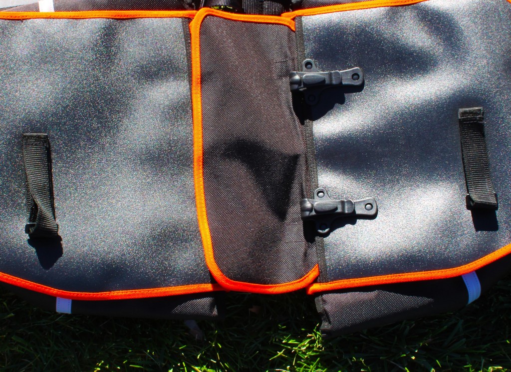 Although this set of panniers doesn't have any zippered pockets like Green Guru Carbon Cooler, there is a durable plastic buckle to keep the main compartment closed. This is a nice feature compared to the Velcro closures used on the Carbon Cooler and the Timbuk2 Tandem.