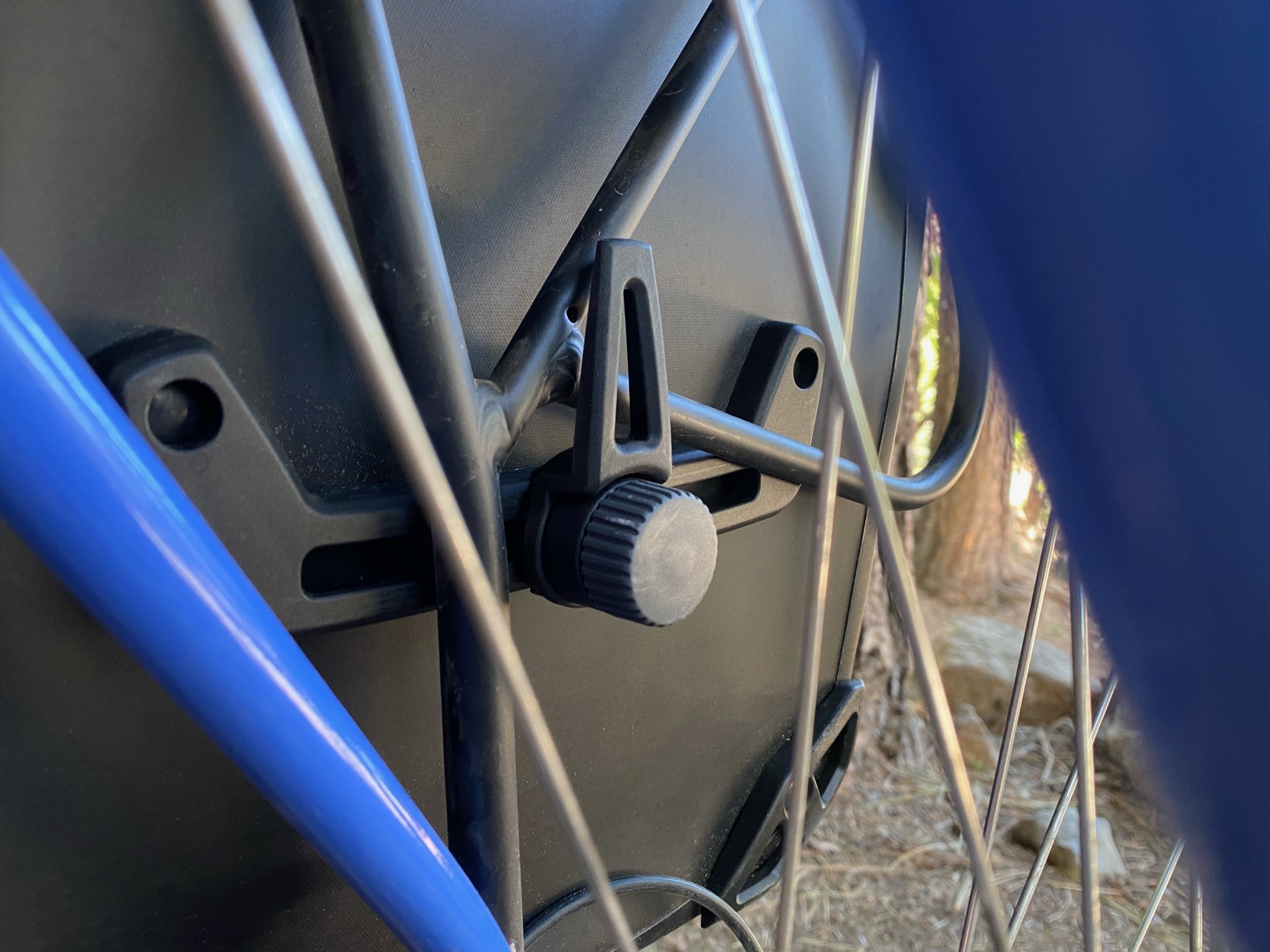 Thule's refreshed design of the Shield eliminated the previous magnet system and replaced it with a standard handle-like hook that can twist and lock over your rack. A tried and true feature, the lower handle hook is simple and user-friendly. The hook did not have as tight of a hold on the rack as t-bar style hooks, so there was some notable rattling off-road but held strong on roadside trips.