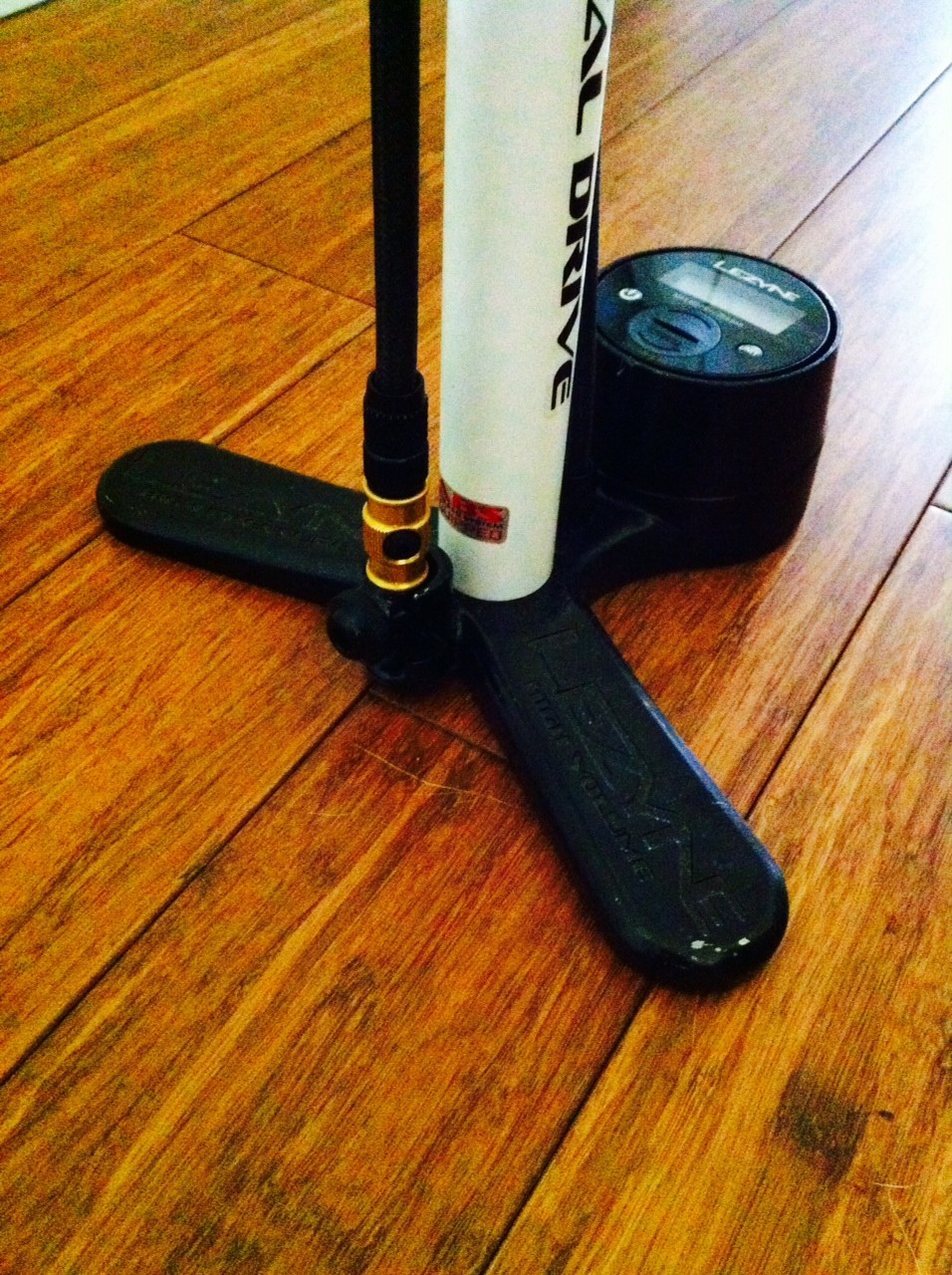 Standing in stark contrast to some of the fragile plastic bases of other models we tested, you could use the aluminum base of the Steel Digital Drive as a hammer. It shares the same dimensions and design of the Lezyne Steel Floor Drive but instead of an analog gauge, a digital gauge sits atop the front tripod leg. The back legs are 4 1/8 inches in length and just under 1 1/2 inches wide; the front leg (that holds the gauge) widens to 3 inches and provides a great deal of additional stability and surface area contact. Small rubber nodes sit in recesses at the distal end of each leg (two on the leg with the gauge) to provide traction on slick surfaces and also serve to protect delicate surfaces. The rubber pieces appear to be glued into the recesses, though one disappeared somewhere during our testing. On most surfaces, the pump performs unaffected, but pumping on fine hardwood floors might not be the best idea.