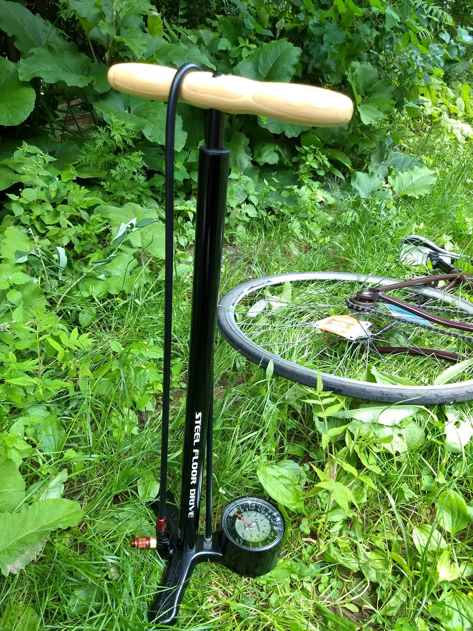 One of the better performers for inflation speed, this pump requires fewer pumps to reach desired pressures than all but the miraculous Blackburn Piston 4, as well as specific high volume pumps (which are mostly impossible to pump to even moderately high pressure). The pumping motion is very smooth, the wooden handle is quite comfortable, and pumping a skinny tire up as high as 120psi required no major increased effort per stroke. The sturdy steel base and strong wooden handle assist with making pumping an enjoyable experience. As such, this pump is especially highly recommended for anyone whose needs involve very high-pressure tires, such as those for track bikes.