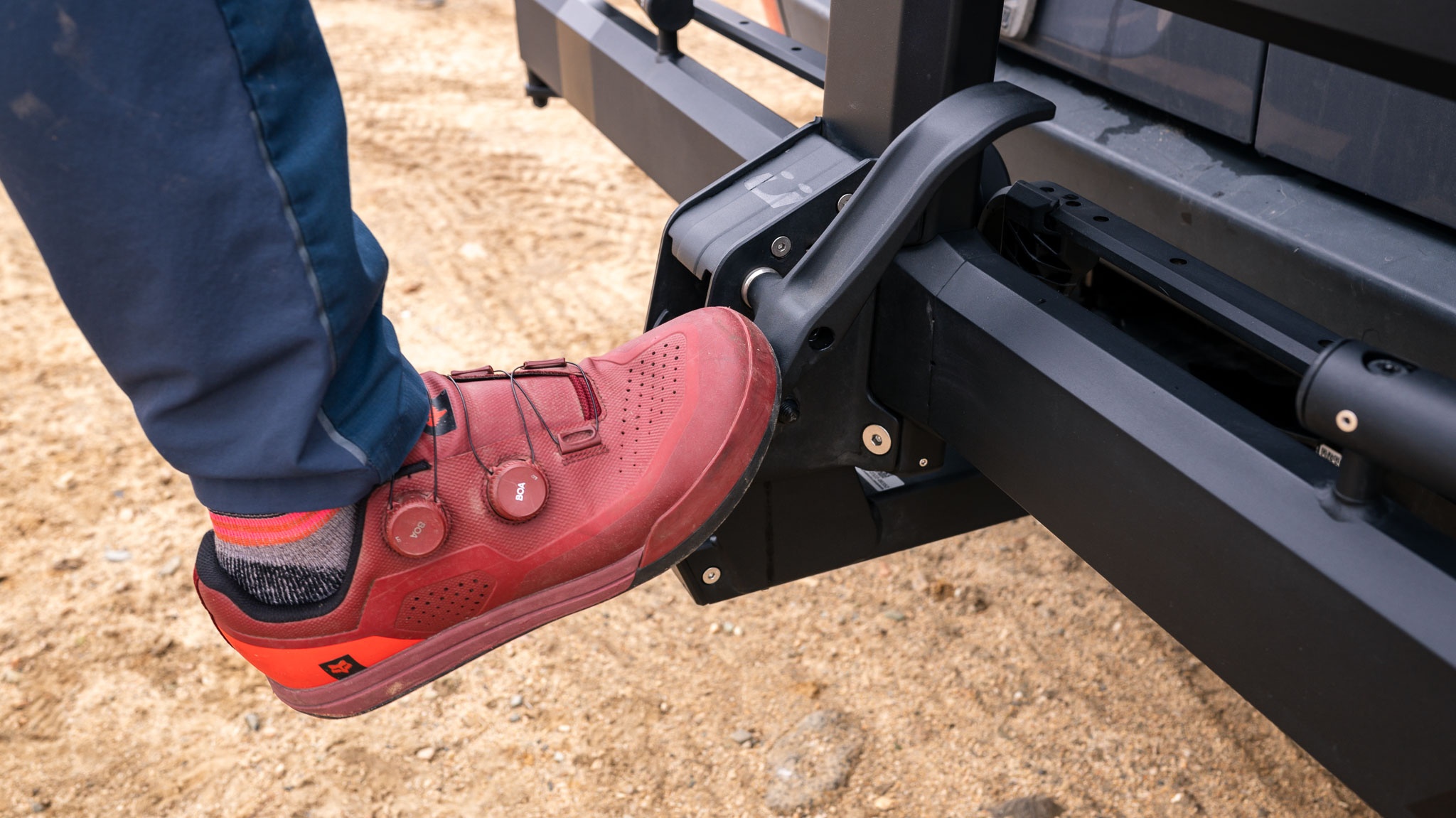 Most hitch-mount tray racks are easy to use due to their designs, but the Piston Pro is even easier, especially compared to other models using the same tire-hold design. Kuat prioritized ease of use and convenience when designing this rack, and it's a delight to use. Every feature has been well thought out and implemented. The PedalPivot tilt-release lever is easily accessible with your foot and quick to deploy at a time when your hands are likely full. The OneTap hydro-pneumatic tire arms are exactly that: one tap. The FastFit wheel chocks make adjusting the rack for different wheel sizes a one-handed job, something most other racks require tools to accomplish. Our favorite part about this style of rack is that it only interfaces with your bike's tires, with no clamps on your muddy paint and no straps over your fancy wheels; there are no worrying wear points.