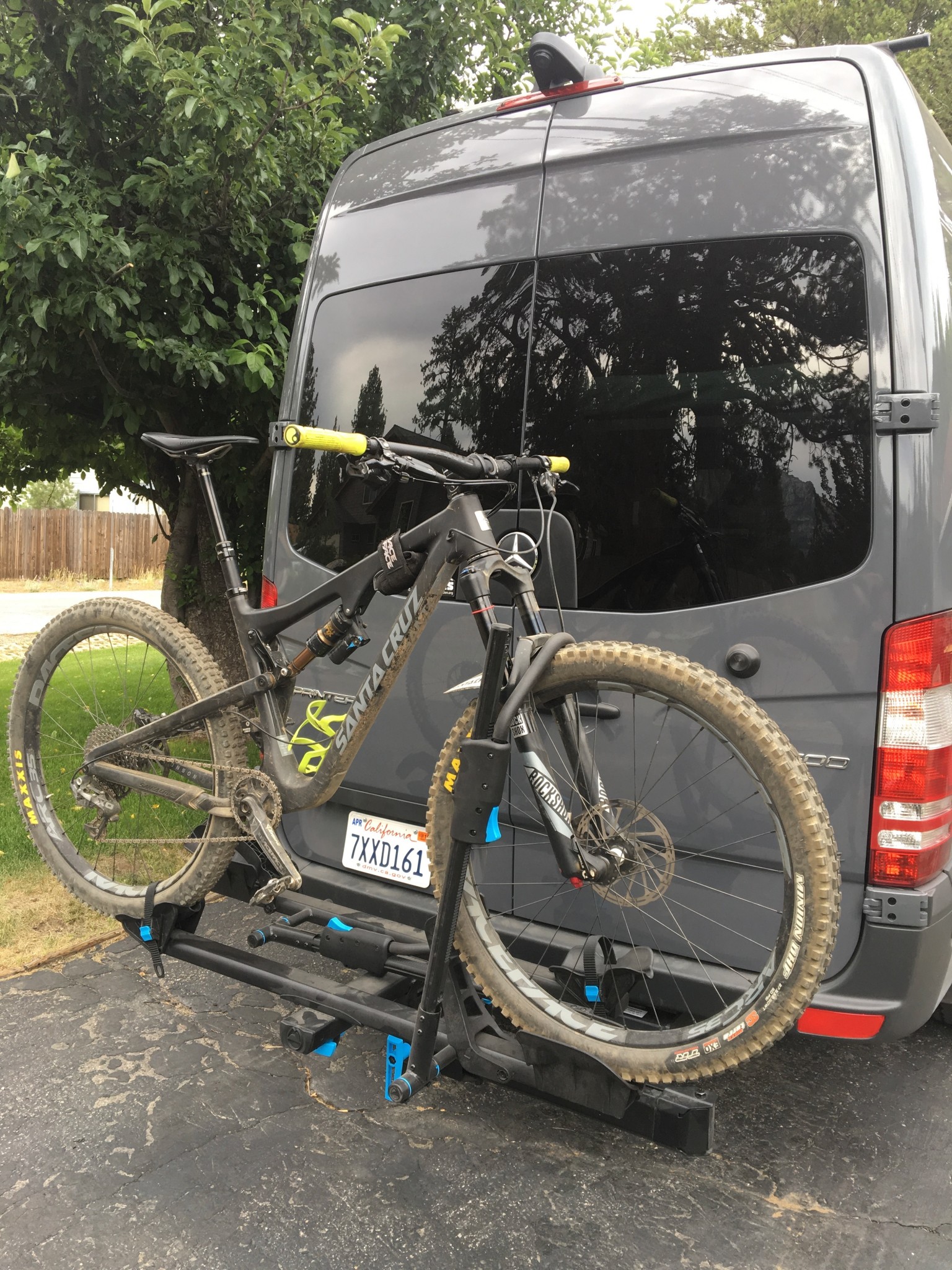The BackStage is a great hitch-mount option for those who have vehicle access issues with other bike racks that only have a tilt mechanism. The swing-away arm is a true game-changer for van travelers and those with a cab-over camper. Beyond the swing-away feature, the rack is highly versatile and user-friendly and can fit most bikes with ease.