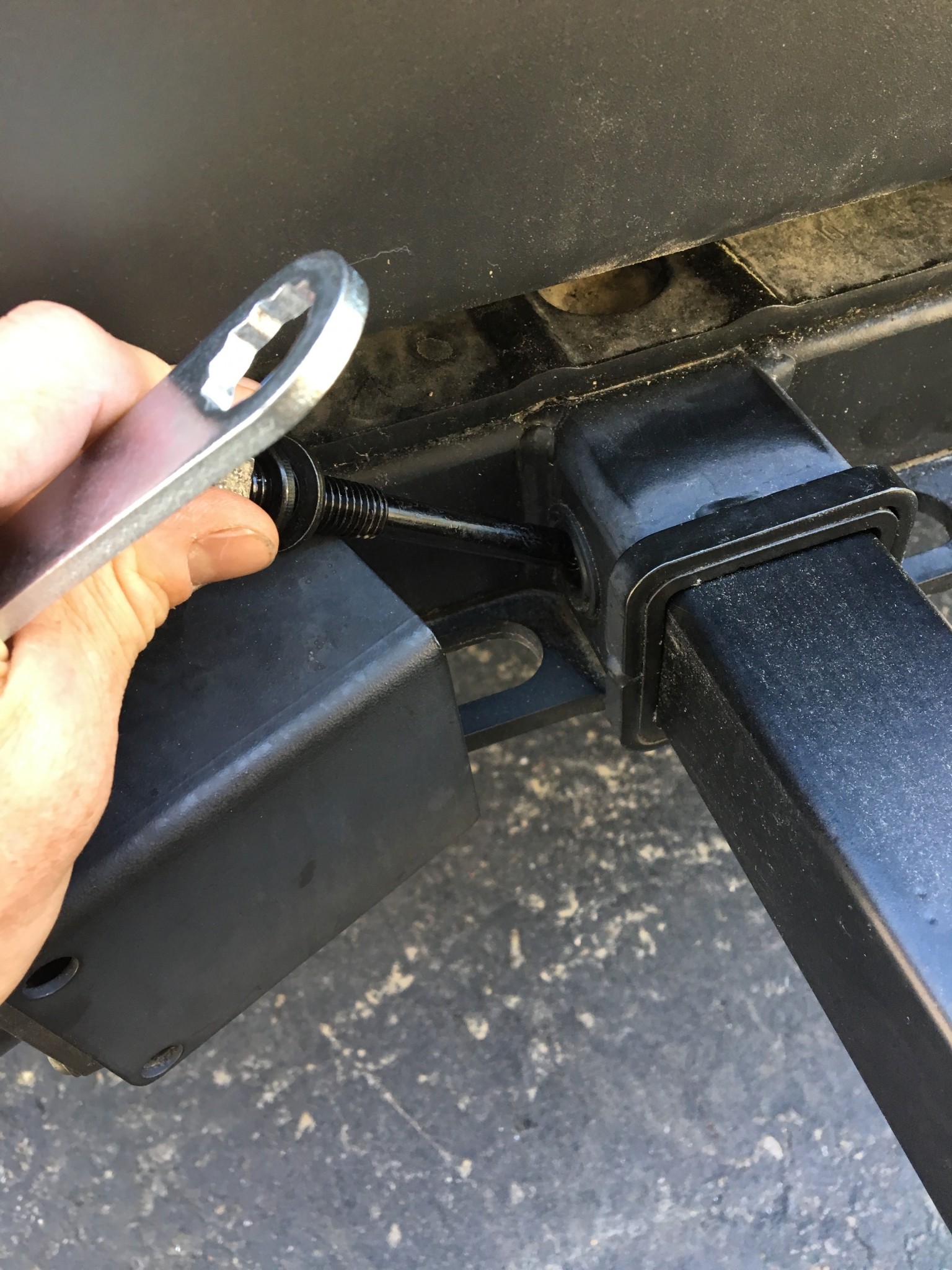 Once the BackStage is placed in the hitch receiver, a threaded hitch pin is used to take the wobble out of the system. Threaded hitch pins used to be standard equipment on bike racks, but most of the newer high-end models have moved to some expansion wedge or ball that is tensioned using a hand knob. Threaded hitch pins get the job done but are much more labor and time intensive, and they require tools to remove and secure. We found the threaded hitch pin to be particularly problematic when mounting the BackStage on our Sprinter test van. The trailer wiring plug assembly blocks access to the lock side of the pin. We eventually disconnected the wiring assembly to use the BackStage on the van.