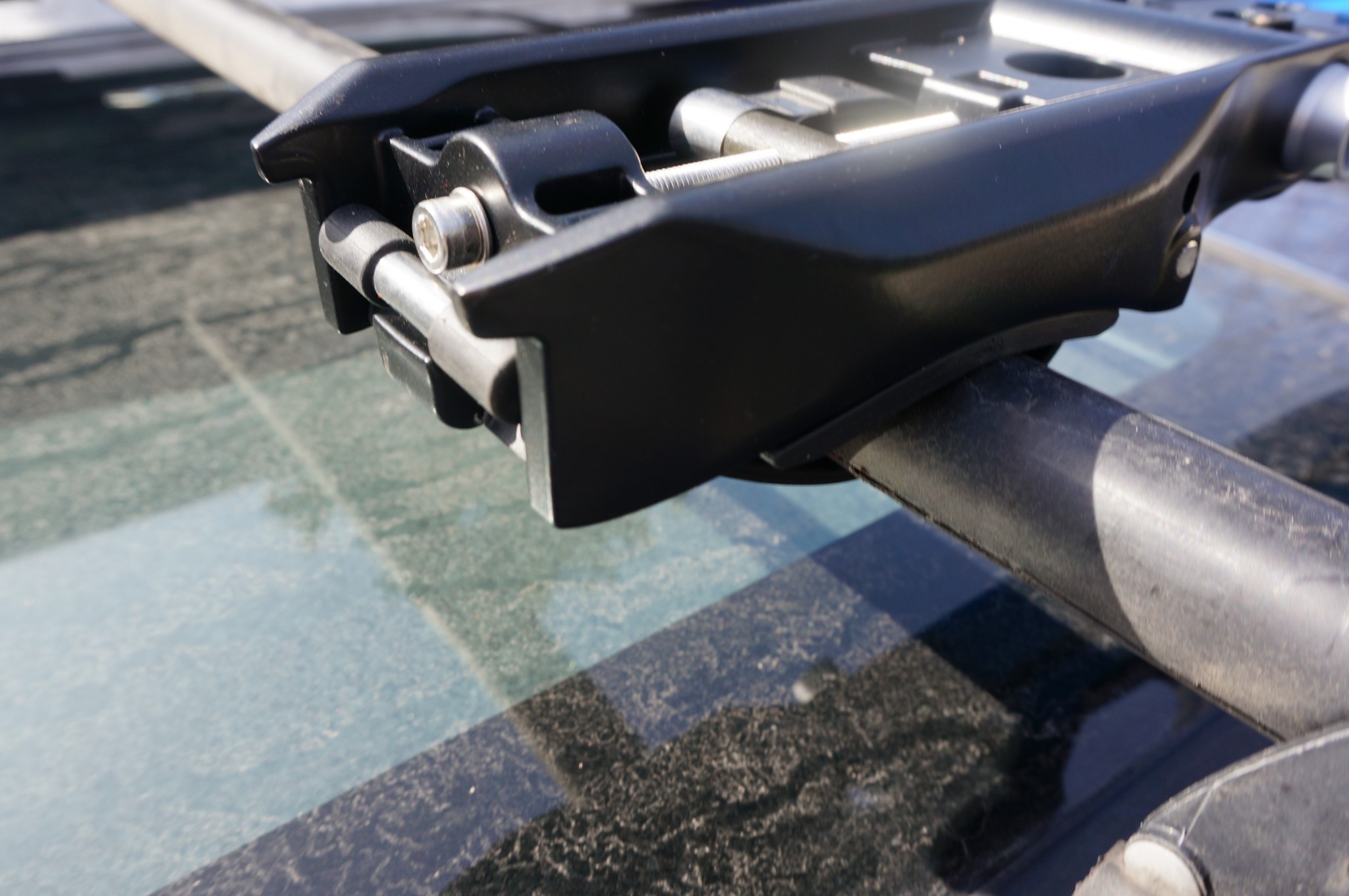 Roof racks, in general, are not designed for nor intended to be frequently removed from your vehicle. The SwitchHitter attaches to all non-slotted crossbars, with a rubber-coated stainless steel strap that wraps around the crossbar and is tensioned by turning a hex bolt. The Trio uses two U-bolts that cover the crossbar and pass up through the main body of the rack. The SwitchHitter has a slight advantage here and is marginally easier to attach than the Trio.