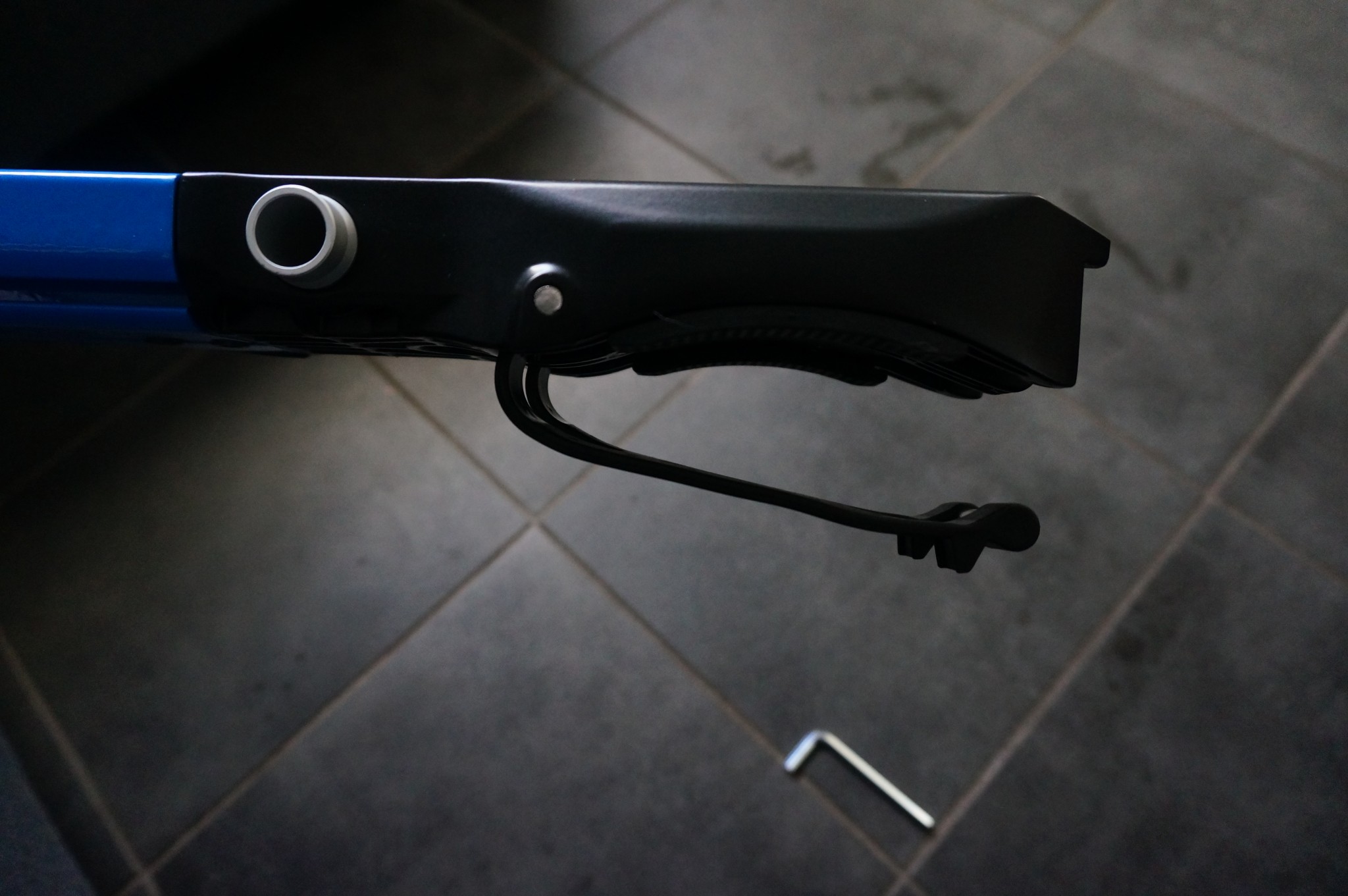 Fork mount roof racks have the distinct benefit of a lower loading height compared to roof racks that hold the bike by the front wheel. It does add the extra step of removing the front wheel every time, but with it removed, the bike doesn't need to be lifted as high to fit into the rack. The main difference we found that impacts ease of use is the axle tube design. Both racks rely on hex bolts to clamp the axle tube in place. The SwitchHitter has two bolts that are accessed by removing the top plate cover.