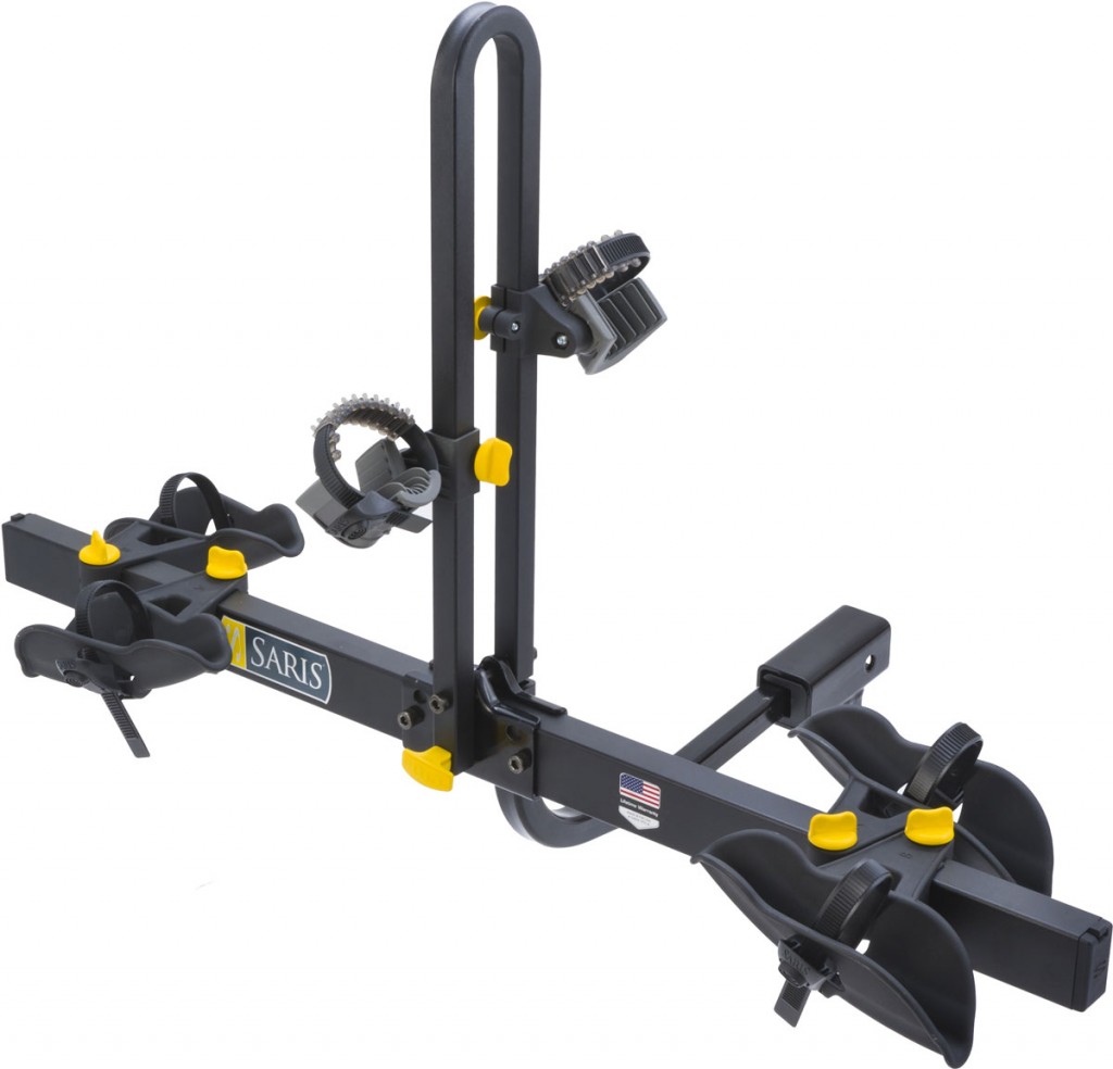 This bike rack has no security features. A locking hitch pin can be purchased from Saris for $35.99. We prefer racks that come with locks or at least have the option of installing lock cores to help secure your precious cargo.