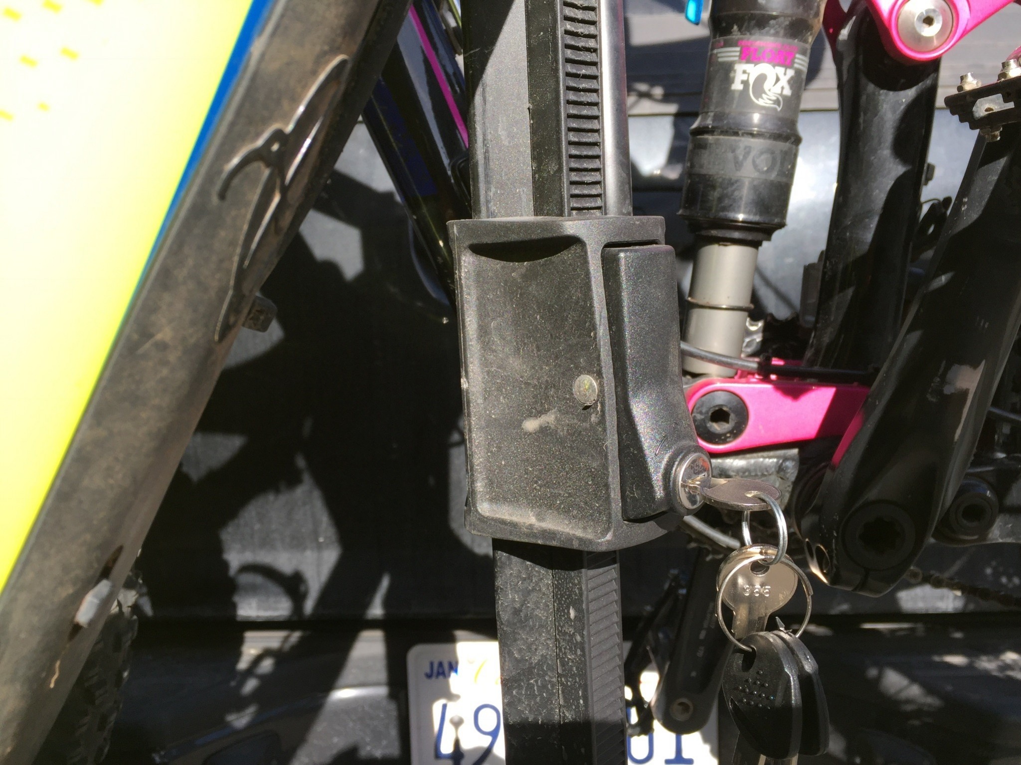 Swagman included a locking hitch pin and clamp locks with the Chinook. The lock on the hitch pin prevents the pin from being removed from the receiver unless it's unlocked. The locks on the clamps are on the plastic clamp handles and when they are locked they prevent the levers on the ratcheting clamp handles from being depressed and moved in any direction. These locking clamps will likely deter opportunistic bike thieves, but determined bike thieves wouldn't be hard-pressed to make off with your precious bikes. Sure the locks are nice, but the wheel trays seem like they can be moved easily enough one could get the bike out of the rack with minimal time or effort. We would recommend the addition of a thick cable lock to really secure bikes on the Chinook.