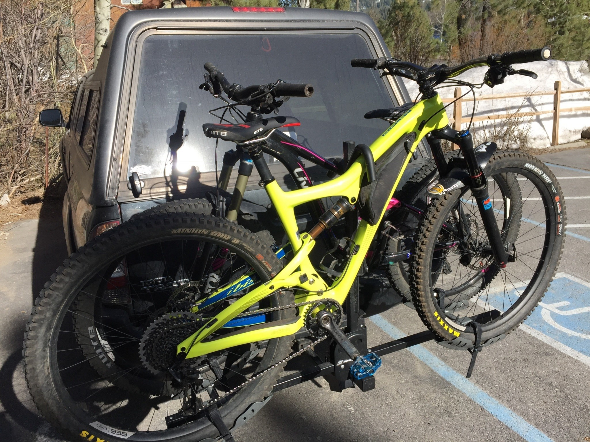 When it comes to everyday use, the Chinook performs relatively well. It lacks the convenience of many of the more expensive models of hitch mount racks, like our Editors' Choice Award winner, the Thule T2 Pro XT, as the wheel tray adjustments aren't quite as user-friendly, and the design tends to conflict with truck tailgates even when it is in its collapsed and tilted down position, but usually plays well with other car's trunk doors. Once the wheel trays are adjusted to the correct width, loading the Chinook is pretty easy due to its low loading height and simple clamp system that is slid down to put downward pressure on the top tube of the frame. Both wheels are then secured in the wheel trays with ratcheting straps. Due to the vertical bar in the center of the rack that holds the clamps, loading the bike that is closer to the vehicle is somewhat more awkward than on models that don't have a vertical bar since you have to slide the bike in behind it.