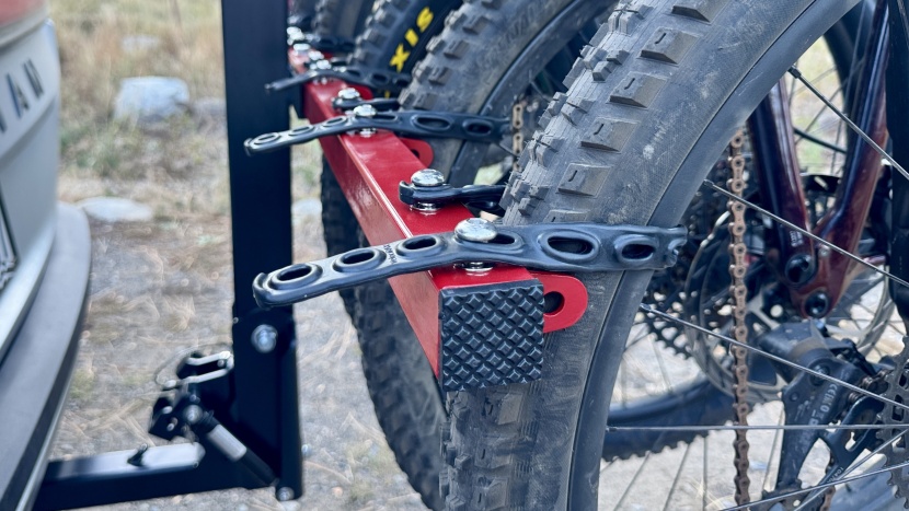The Velocirax 6X isn't a slam dunk, but it hints at one. The five-bike version of this rack gives 15" spacing between bikes instead of the 10" that we found insufficient. Even with movement in the mast while driving off-road, the extra space between the bikes should be sufficient to prevent damage. After noticing damage to our bikes, we started asking friends with large flat pedals to remove them prior to loading the rack, and this seems like it shouldn't be the case. Velocirax provides rubber bands to attach to your brake levers, which help prevent movement, but this also feels like a band-aid for a product that could have been engineered better. I wouldn't recommend this particular model of Velocirax to most people, but the 5X and new 5X MAX quell most of our criticism and should make for excellent racks.