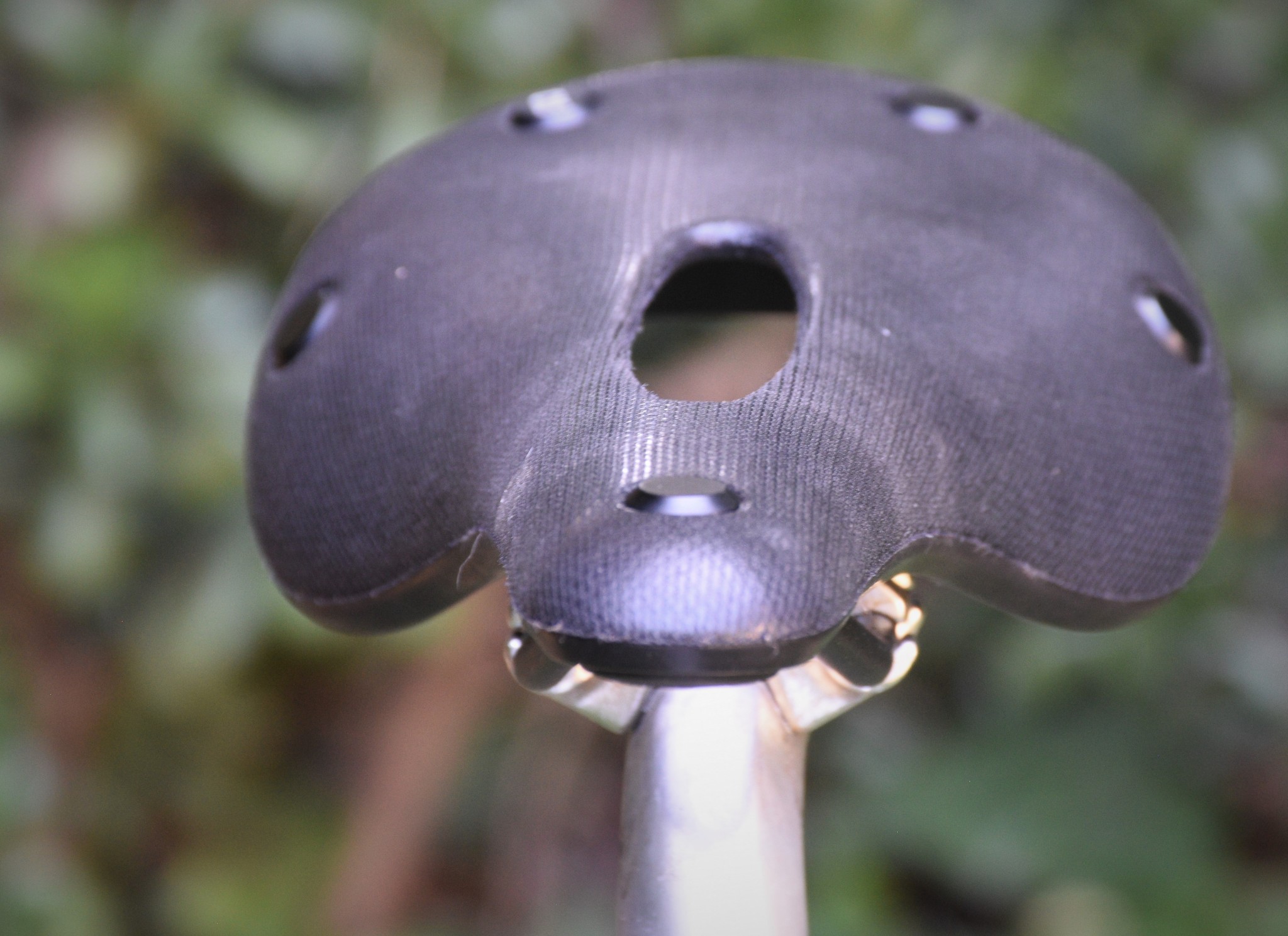 The firm rubberized material and racing-inspired shape of the Cambium C15 Carved have the potential to make this a high-performing saddle, but its heavier weight and high flexibility can limit the support needed for efficient power transfer. The unsupported rubber seat tends to flex a lot and become bouncy when riding on rough roads or when pedaling aggressively, especially with the carved cutout that decreases the overall stiffness of the saddle. While this probably wouldn't be an ideal choice for all-out racing, it is better suited to lower intensity steady riding styles like touring or commuting.