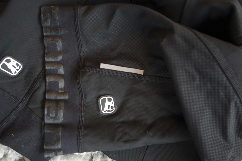 The Giordana Laser Bib ranked highest in this category for its overall aesthetic appeal. Bibs in general rank a little higher on style by keeping nice lines and a slim profile, but the Giordana Laser Bib did a better job than most at this. The bib materials are all black with a small 1" x .5" rubber medallion of the Giordana Sagittarius mark – the centaur with his bow – in white on the front of the right leg above the cuff and on the back of the left leg above the cuff. Another subtle detail on the left cuff is 'Giordana' screened in a black, grippy material. The only other bits of color on the bib are two small strips of reflective material sewn into the seams on the side of each leg and one very small tag on the back with the logo and the Italian colors – green, white, red – underneath.