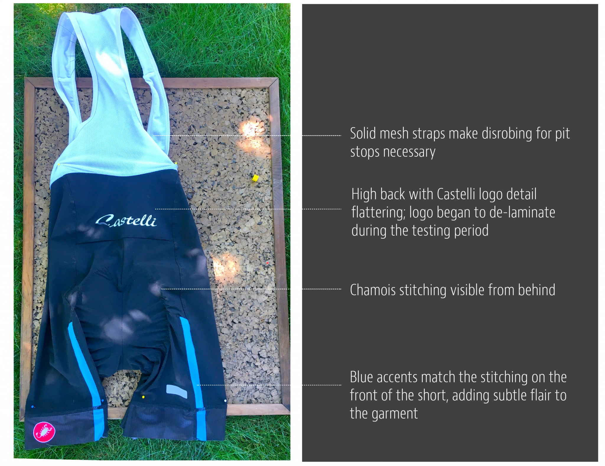 Since our test period with the Velocissima, Castelli has released the second generation of this bib. It doesn't look like they've reinvented the wheel, but there are some tweaks; the seamlines and paneling have changed some, and the leg holes now have a raw finish, which Castelli claims helps fight the dreaded “sausage effect”. There are also new silicone vertical leg grippers to keep the short in place. Compare the two models below; the Velocissima we tested is pictured first, followed by the Velocissima 2.