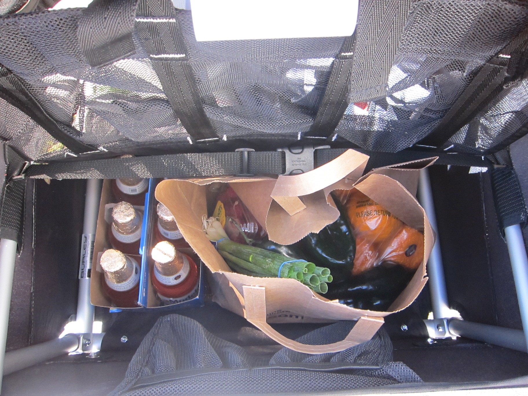 The front cover of the D'Lite is bordered all the way around by an inch or so of opaque fabric, whereas the Thule Chariots have a mesh screen that goes all the way to the edge. This isn't a huge deal, but we felt that the D'Lite doesn't offer quite as impressive a viewing experience for passengers as the Chariots.