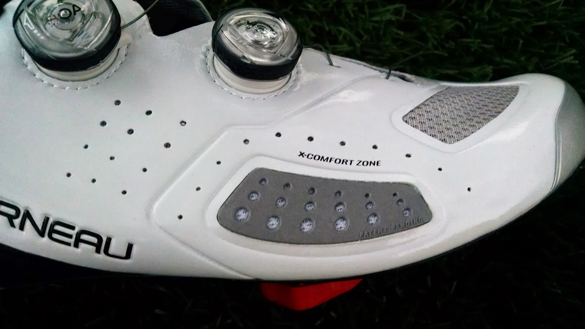 The X-Comfort Zone feature really shines here. It's a small ventilated elastomer-spandex insert on the outside of the foot near the toes that allows the shoe to expand between B and D+ width feet, and it also expands with your foot on the downstroke. This isn't necessarily a personalized adjustment like dialing in, but it's certainly an accommodating feature.