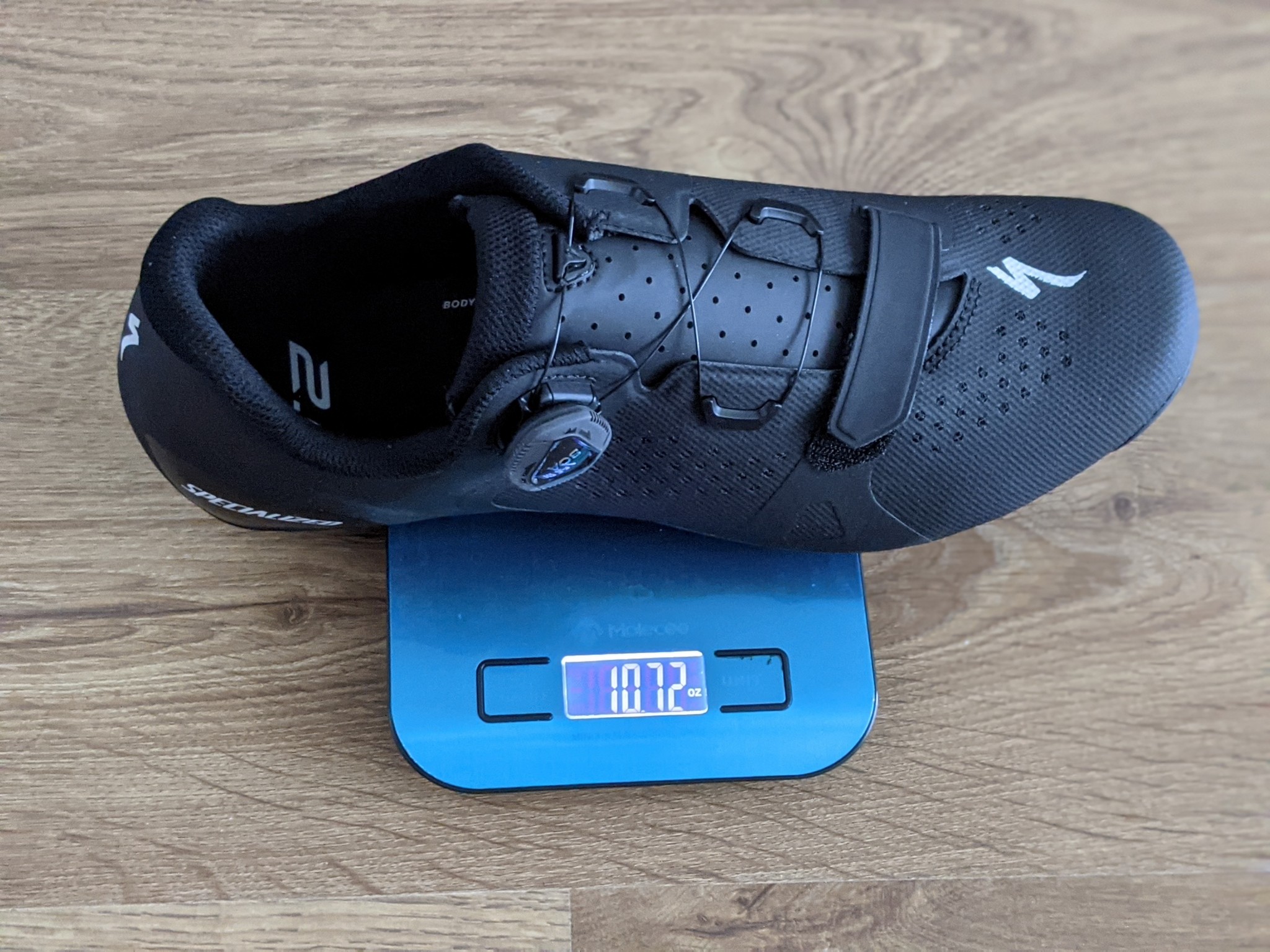 The Torch weighs in at 21.4 ounces in a pair of Men's size 45 (Euro sizing). Not too shabby for a mid-market road shoe. A lot of the weight savings come from the carbon fiber sole and modest TPU upper. It's also a pretty stripped-down model, so there are fewer gadgets and comforts to weigh it down.