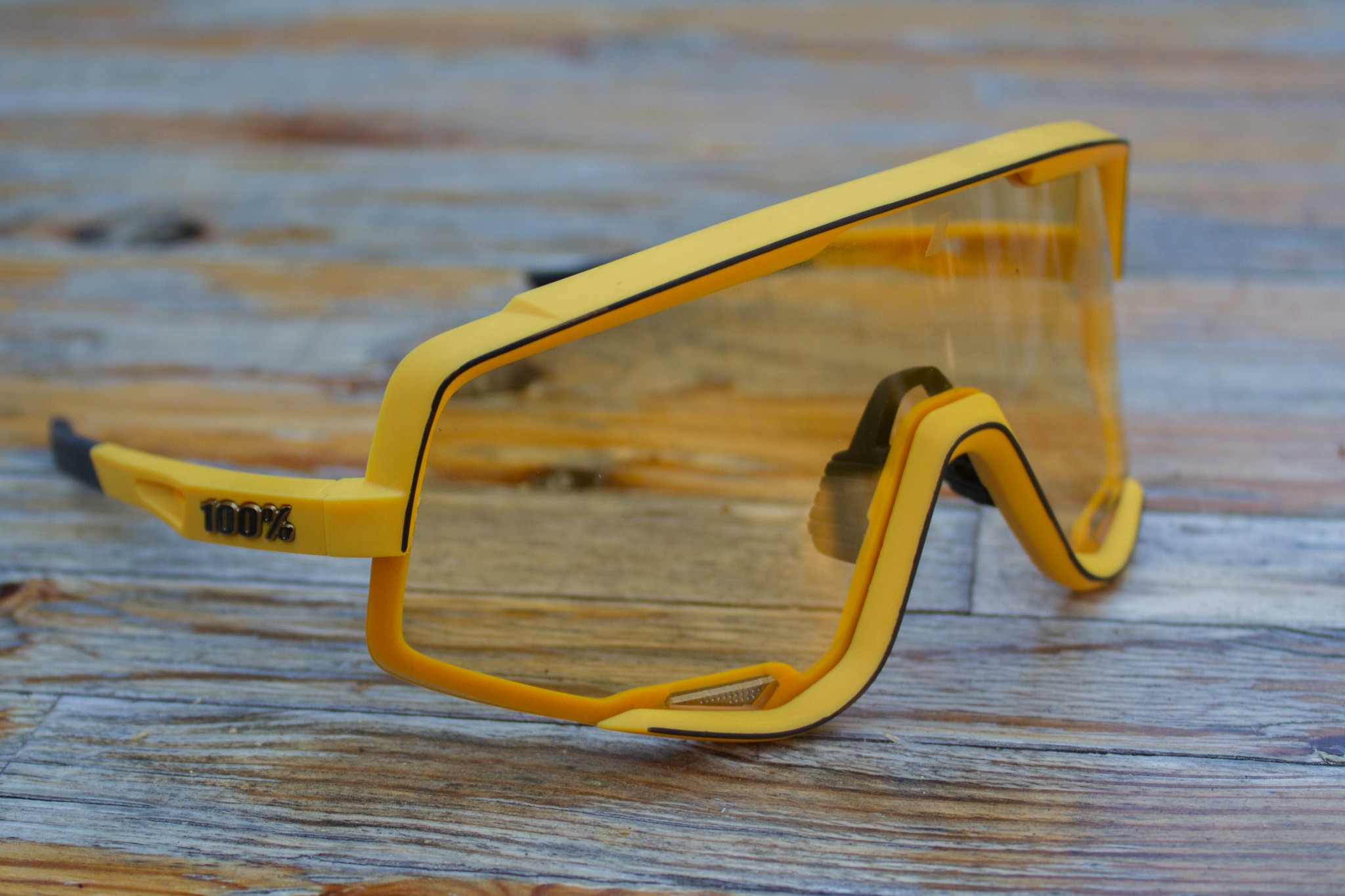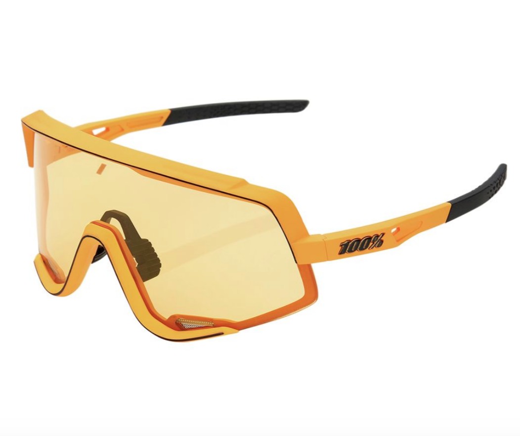 100% includes two lenses standard when you purchase the Glendale. We tried the Soft Tact Mustard frames with a soft yellow lens for low-light conditions and a darker smoke lens for when it gets bright. The soft yellow lens offers a category one light filter that transmits 68% of visible light and provides protection from 100% of harmful UV rays. For more protection, the smoke lens is rated as a category three filter and transmits just 12% of visible light while providing 100% UV protection. Both lenses use an impact-resistant polycarbonate construction with an anti-scratch coating and water-repellent treatment.