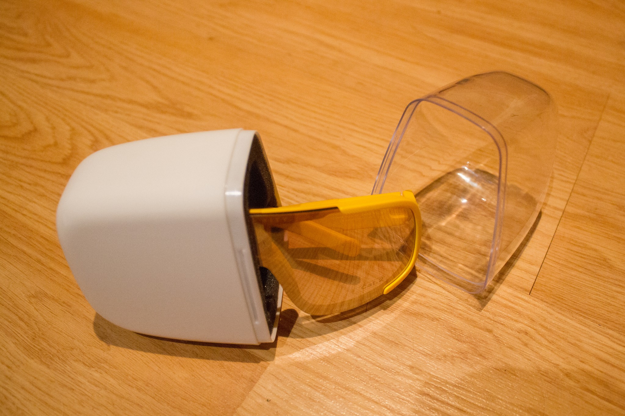 Much like its unique and modern glasses design, POC also thinks out of the box with their packaging and storage case. Unlike the rigid, zippered cases that many other brands offer, the Aspire comes in a half-white, half-clear hard plastic case. The white half of the case has a soft foam pocket while the clear half of the case allows you to see the glasses inside. If we didn't pull the case straight out of POC's packaging, we might have thought that somebody had just stuffed the glasses into whatever storage case they could find. The quality and fit of the case don't seem to match the quality of the glasses.