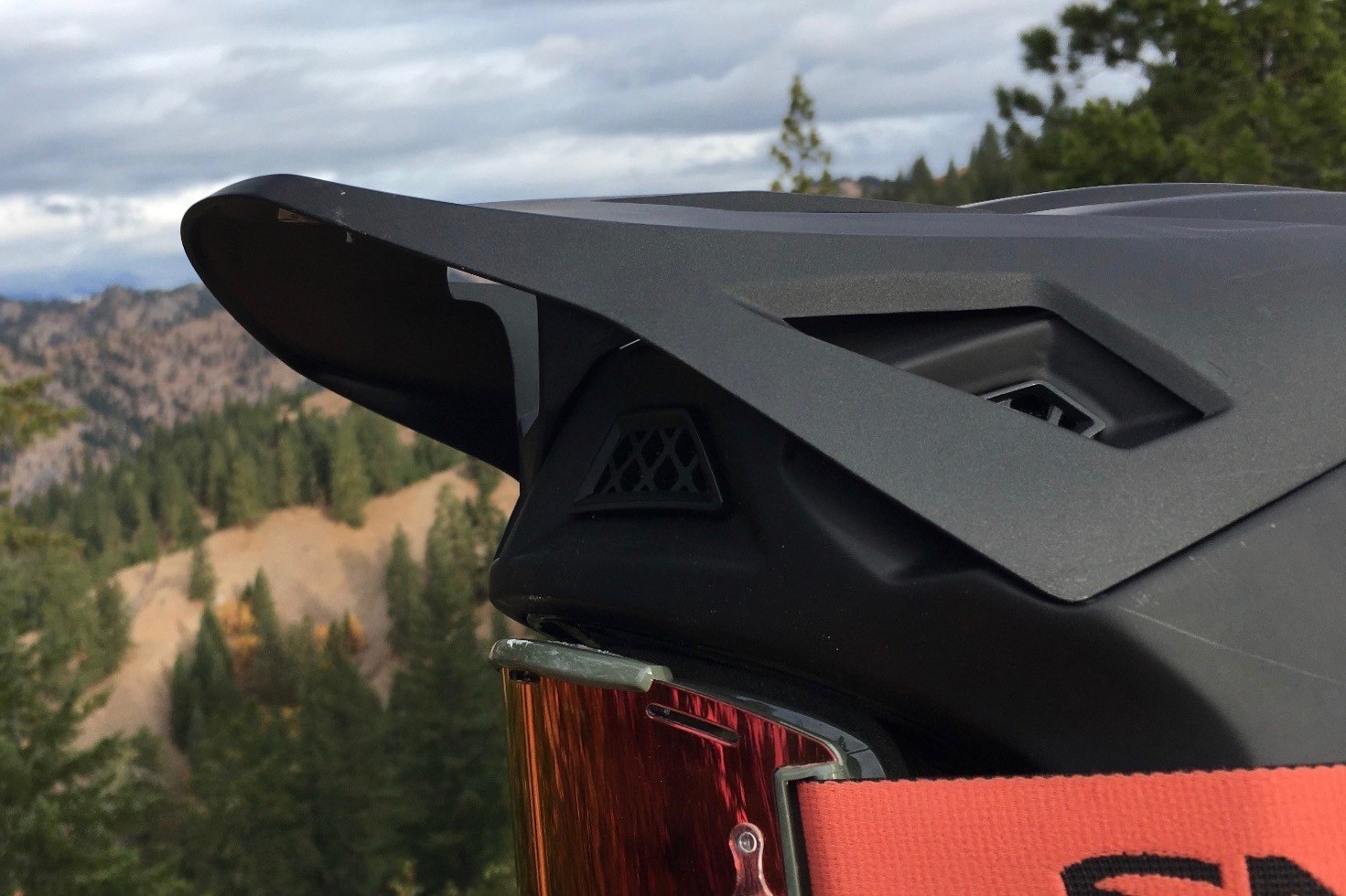 The Rampage Pro Carbon has exactly seventeen vents, seven of which are found on the chin bar. The main vent is directly in front of the mouth, flanked with two, large, horizontal vents on each side of the face. There are also two small ports above the main mouth port. All of these vents have plastic, mesh-like covers backed with thin foam to keep debris out. While these vent covers are effective at keeping debris and even some dust from reaching your face, they inhibit airflow pretty significantly. Some air can still pass through, but there isn't exactly a cool breeze on your face like you might find with open chin bar vents.