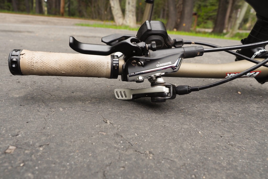 The remote also requires a greater effort to actuate as a result of the awkward ergonomic position; it sits high above all other componentry, resting on the ground during trailside repairs (when the bike is commonly flipped upside down), such as when changing a flat tire. The undue amount of weight put through the remote on these occasions make it more susceptible to damage. Cosmetic damage, like scratching, is virtually unavoidable unless you ride exclusively on golf course greens (this behavior is not condoned by OutdoorGearLab).