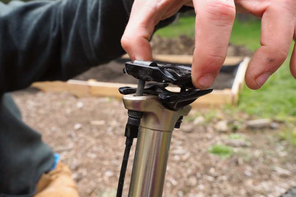 Cable length is easy to determine given that nothing is hidden within the frame. Simply run the cable along the frame, pull it taut, and tighten the 2.5mm allen screw at the post's head. The final crimped end tucks neatly into the lower saddle clamp to tidy things up. Cable tension occurs at the remote and if you don't completely nail tension on the setup, rotating the barrel adjuster is likely all that will be required. Too little tension would result in the post getting hung up on the middle trail position, while excessive tension can result in “phantom” movement. Clockwise rotation of the barrel adjuster to loosen tension solved the problem.
