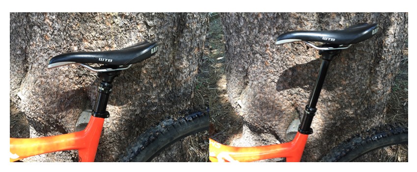 The Race Face Turbine presented us with a mixed bag in the smoothness and functionality department. The post was quite easy to compress, much like the 9poin8 Fall Line that shares the same DropLoc internals. The factory pressure setting, however, made for lightning fast extension and a loud thunk at the top out. We found the speed to be a little faster than we liked, so we took a little pressure out of the air spring to ease the fear of seatpost-inflicted pain to our undersides. Once we dialed in the speed of the post, we still found it to top out somewhat harshly. We thought the post felt smooth in its travel for the first few rides, but it quickly started feeling sticky in its extension, it almost felt as if it were under-lubed from the factory. Interestingly, the 9point8 Fall Line occasionally had a similar feel as it returned to full extension.