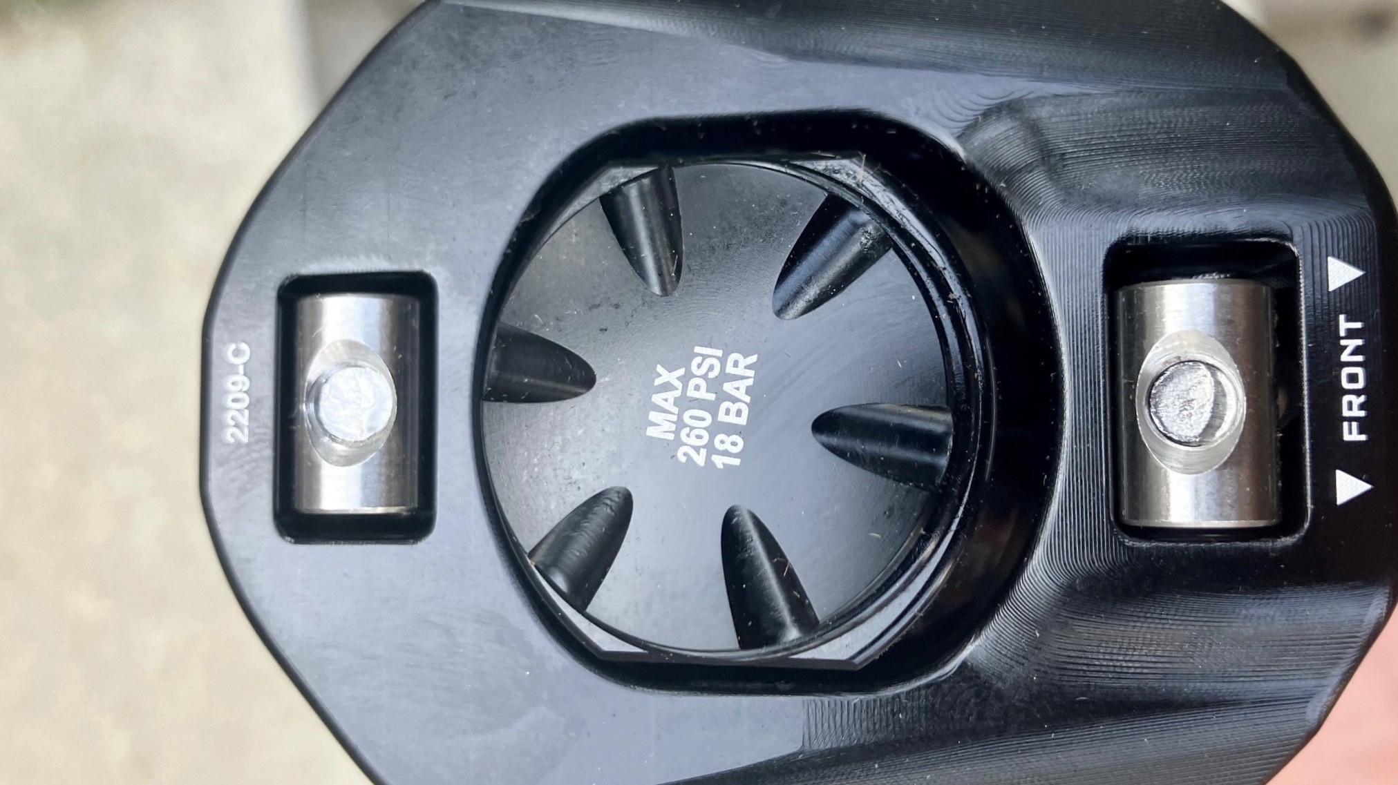 Early on in the testing, the Resolve post felt sluggish on the return. About 80% up, there was a sticky hitch before it returned to full extension. We removed the saddle and attached a shock pump to the post. There was only 140 PSI in the post. We pumped it up to 240 PSI and the problem was permanently solved. We should have checked the air pressure during the initial installation. Thankfully, the air spring valve is easy to access with the saddle removed.