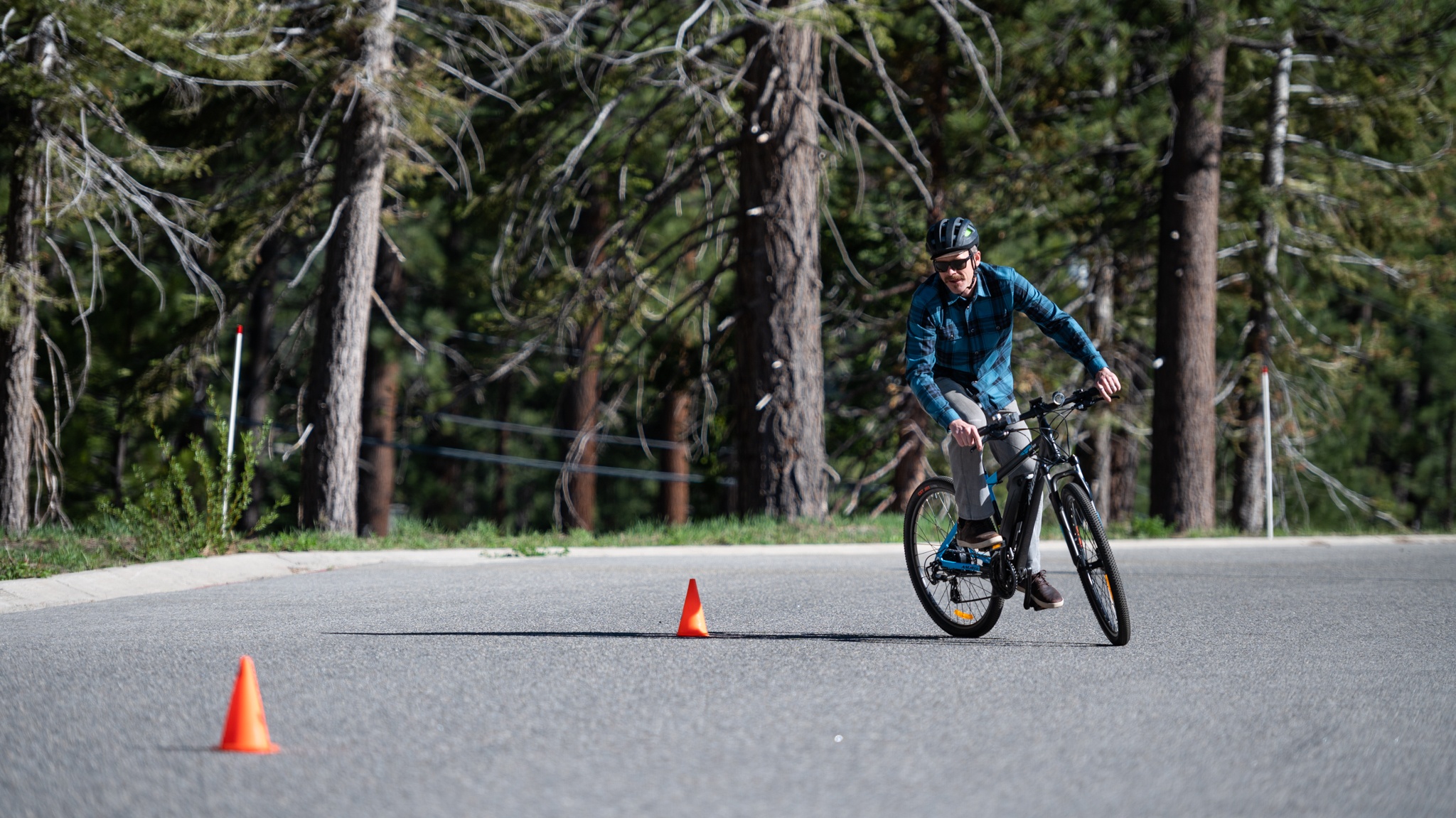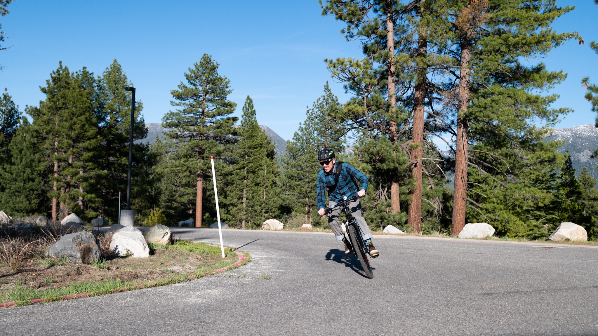 We were pleasantly surprised by the Blue Spark's performance in our handling tests. In our cornering tests, we found that it made nice rounded turns with a smooth and predictable feel. It handles both short turns and long turns with the same consistency and control. It responded well to steering input at high and low speeds and never felt unsteady the way bikes with smaller wheels can. At 20 mph, while bombing down our test hill, it felt stable and unflappable thanks to its 27.5-inch wheels and longer wheelbase.