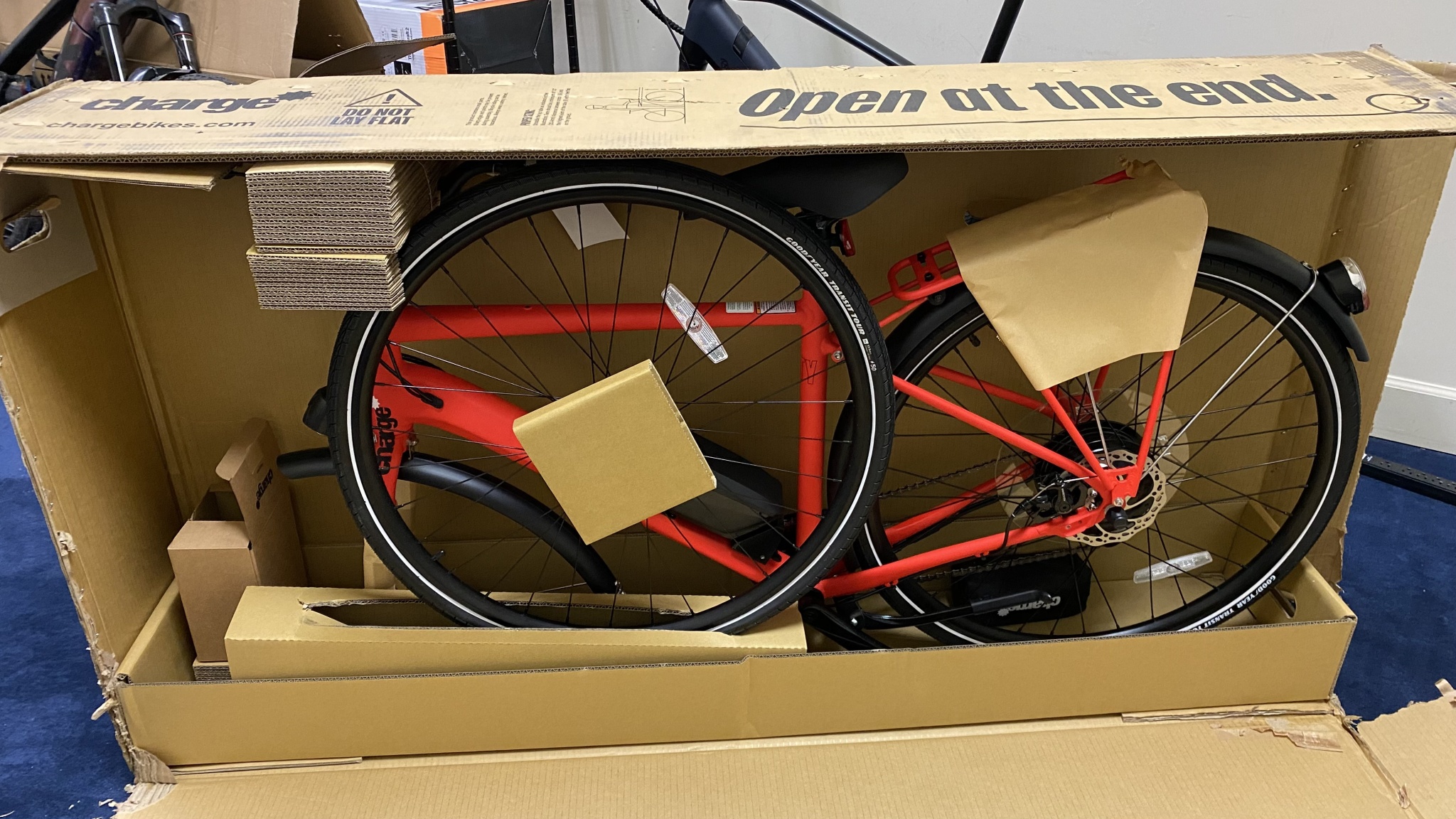 The City was among the easiest models to assemble, earning a 9 out of 10 in this metric. It comes in a slightly larger box due to the fact that it is more pre-assembled than most. Due to the size of the box, it can be a bit unwieldy to move around, although, with an assembled weight of 48 lbs and 8 oz, it isn't quite as heavy as some of the bulkier bikes in our test fleet. Charge has gone out of their way to make the initial setup process as straightforward as possible, with a QR code printed on the side of the box that brings you to an assembly video, as well as user-friendly pull tabs that essentially cut an entire side of the box off to open it.