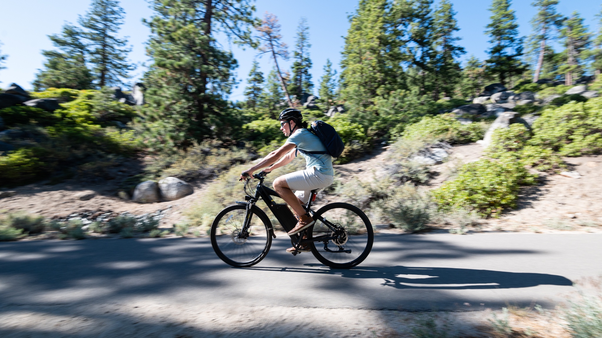 The CrossCurrent S2 can be configured as a Class 1, 2, or 3 e-bike by adjusting its settings. Since our test bike came in its US Class 3 configuration, that is how we tested it. In this configuration, it has five pedal assist levels, Eco, 1, 2, 3, and Sport, and it can also be ridden with no assist, of course. These assist levels provide a wide range of pedal support from relatively light to very strong. The S2 has no problem getting up to its top speed of 28 mph and can supposedly go up to 33 mph if you put it in Race Track mode. We didn't test the Race mode, but we can verify that this bike is plenty fast as is. The CrossCurrent uses both cadence and torque sensors, and it has a very smooth and refined power delivery as a result. It provides pedal support after about a half pedal stroke, and it comes on gradually and consistently, ramping up with your effort. The “precision strain gauge” of the “proportional torque sensing” system monitors your pedaling effort and provides power accordingly. The harder you pedal, the more support it gives. We feel that this fast-moving bike is a great option for riders looking to drive less but still want to get places relatively quickly.