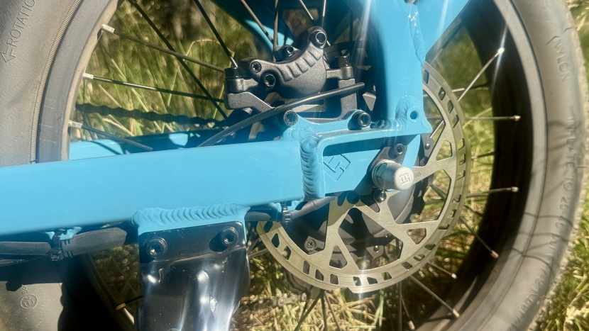The 45.5" wheel base gives the bike a compact, yet comfortable feel that has no problem dicing up the urban environment or cruising along the bike path. Faster speeds, such as those found on steep downhills, make the bike feel a bit nervous, but the Star Union 602 hydraulic brakes and 180mm rotors effectively bring the bike to a stop. We ordered this bike on its first day of availability, and it came with a bevy of upgrades and accessories. One of those upgrades was the comfort saddle and suspension post that proved just a bit too comfortable for most of our testers. After just two rides, we swapped the saddle and post to the standard versions that we found more to our liking.