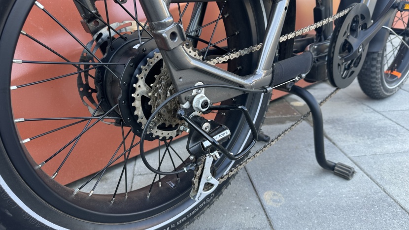 The RadRunner 3 Plus provides an incredibly comfortable ride, and all of the choices Rad made about its specs come together to make it feel user-friendly and easy to ride. The 7-speed Acera drivetrain shifted fine, but we're honestly no fans of the shifter design that requires pushing your thumb above the handlebar. The Tektro hydraulic disc brakes connect with 180mm rotors to handle the stopping duties and perform quite well, even with the bike fully loaded.