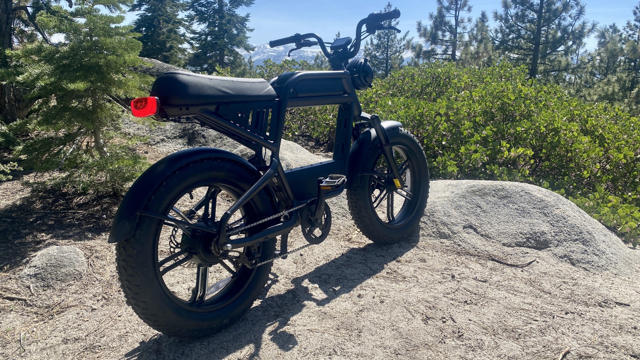 There's no escaping the feel of the heavy wheels on this bike. They contribute to the motorcycle feel, and their gyroscopic forces slow your steering and make pedaling feel laborious. They also feel incredibly stable at speed and give the bike confidence. 4-inch wide tires never long for grip, and their volume absorbs shock over a wide range of conditions. We rode this bike in dirt, mud, snow, and sand, and it never felt like the tires held us back.
