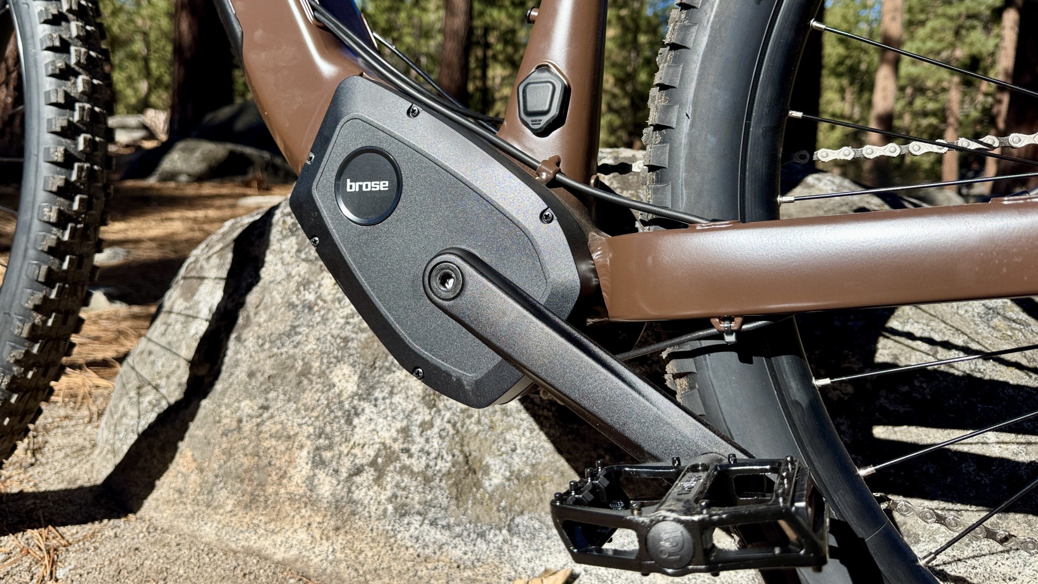The Brose TF Sprinter motor puts out a maximum of 90 Nm of torque. Until recently, this was near the top of the torque numbers you'd find in an electric mountain bike. On a sustained climb, the motor tricks you into thinking you're riding a bike that is much lighter than it actually is. The way the power integrates with yours is very smooth, and if it were not for the whhrrrrr of the motor, you could mistake it for a strong tail wind. The bike's most gentle assist is called ECO, and it provides the most subtle boost that feels like it negates the bike's weight. Riding in ECO feels like riding a normal, non-powered mountain bike. Kicking the assist up to TOUR mode gives you a bit more pep; the bike feels noticeably faster to accelerate. SPORT mode is.. well, sporty. The bike has a lively feel in this mode that eases the demand on your legs and elicits smiles. Sport mode was my favorite during testing; the assist feels natural, and the ride is almost effortless.