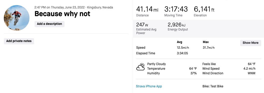 On our standardized range test hill, I rode laps in Turbo mode starting with a full battery and going until it was completely drained. I rode 33.14 miles with 5,341 vertical feet of elevation gain, giving the bike minimal help. Now, that's very impressive in and of itself, but our real-world trail riding tests also confirmed the Levo's impressive range capabilities. Using a mix of Trail and Turbo modes, a 185-pound rider could easily do trail rides of 35 miles with up to 7,000 feet of climbing. Even more impressive was when I took the Levo on some hot laps of an incredibly steep trail in Downieville, California, ascending 2,200 vertical feet in right around three miles. The Levo delivered three complete laps- roughly 18 miles and 6,600 vertical feet - all in Turbo mode up a trail too steep to ride on a traditional mountain bike. Only once did we run out of power on a ride, and our tester was definitely asking for it when it happened. On a 41-mile ride with 6,141 feet of climbing, our test rider was a little overzealous and drained the battery to its last bar 5 miles from the car. Fortunately, the bike entered a power-saving mode, and he could limp it back to the car in what felt like a low-powered eco mode. Regardless, the Levo can go the distance and should have more than enough juice for most rides.