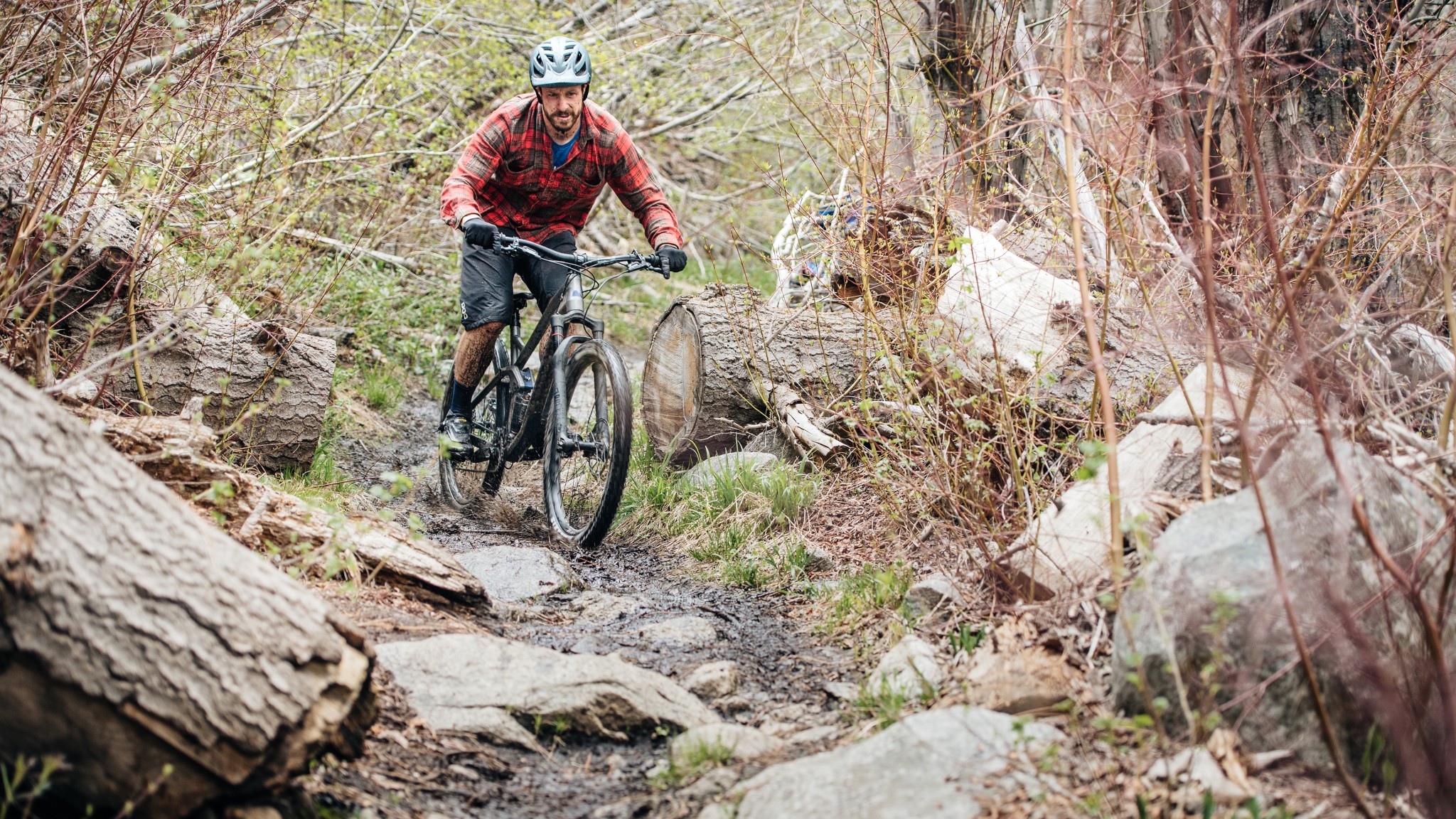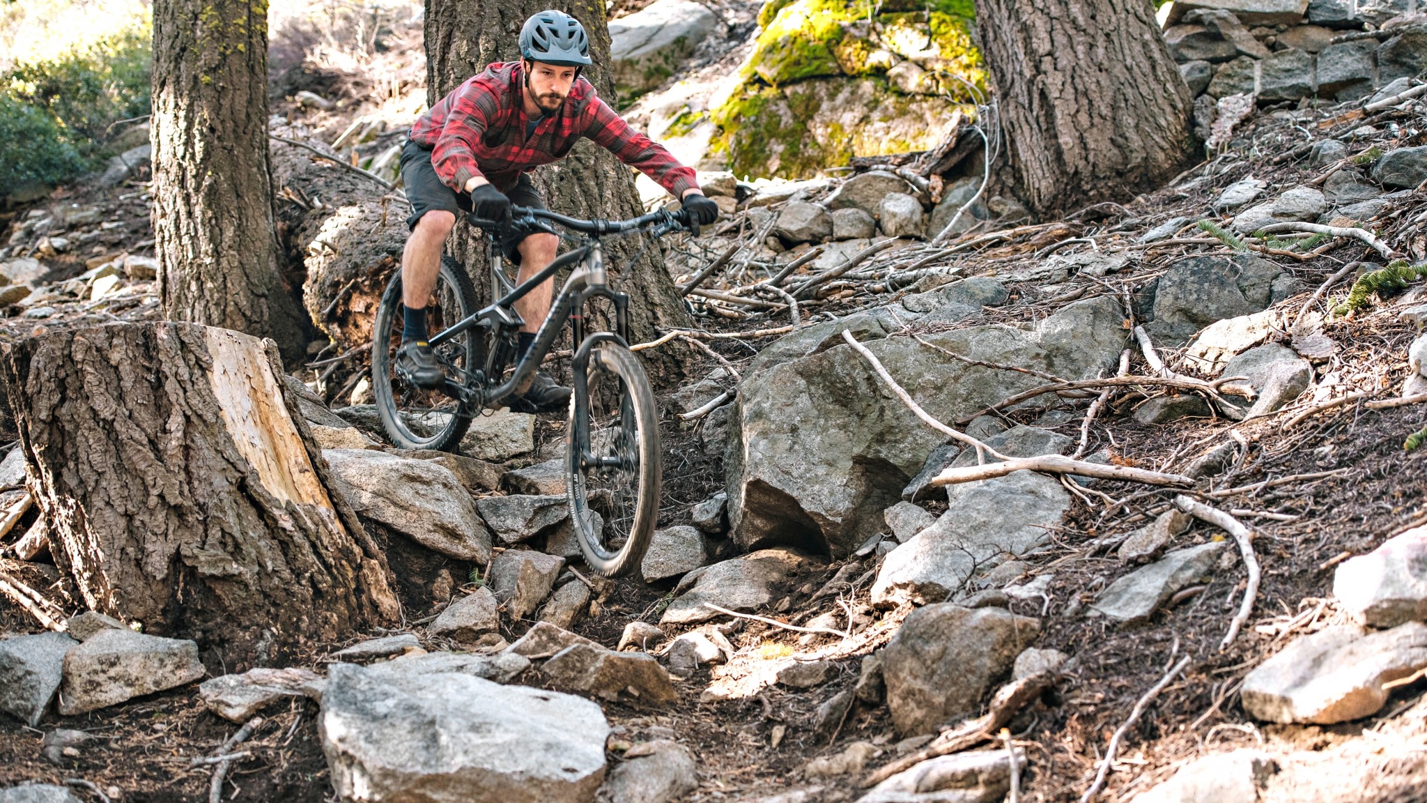 The Strive has components that largely worked well on the descent. The 170mm RockShox Lyrik was supportive and plush. The burly 35mm chassis tracks well and isn't easily deflected. The RockShox Monarch Plus R rear shock went beautifully unnoticed. SRAM Guide R brakes are respectable on a bike at this price. The 2.4-inch Maxxis Minion DHR II front tire was a nice choice, but the 2.3-inch Minion SS was questionable. The SS stands for semi-slick. This tire is designed to be fast rolling. The semi-slick design heavily detracts from braking abilities. When hammering on the rear brake, this tire simply doesn't bite well. It is also questionable in sandy or sloppy conditions.
