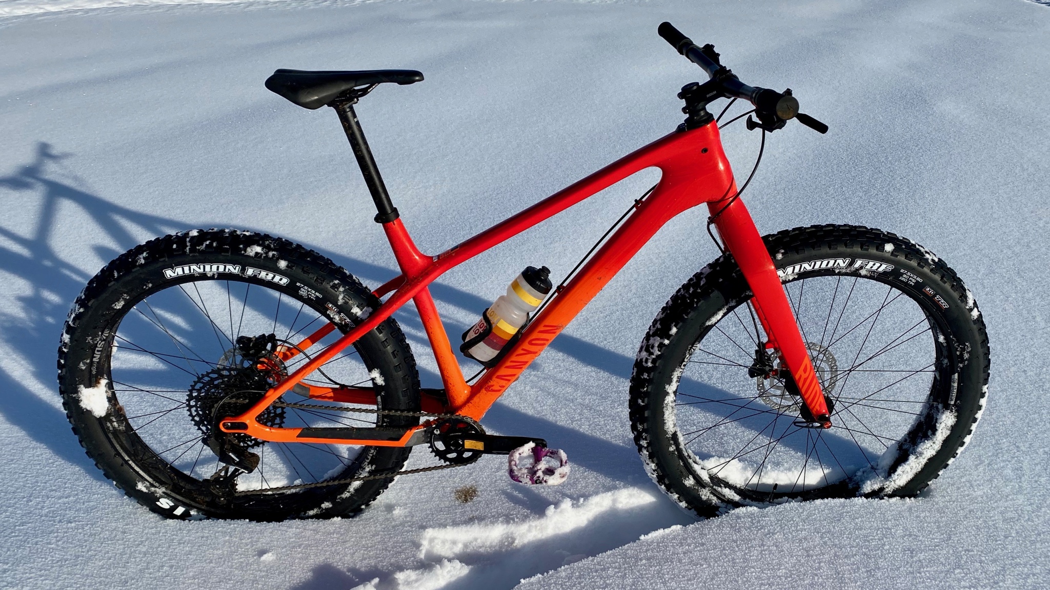 2025 UpdateSince we tested the Dude, Canyon has changed its parts spec and lowered its price. Our original gripe with this bike was the Sram SX shifter, which has been replaced with a Deore trigger shifter, which should be much more ergonomic, especially with gloves. The bike still only has mounting points for a single bottle cage, so bike packing is not going to be in its skill set, but it's an otherwise awesome snow bike.