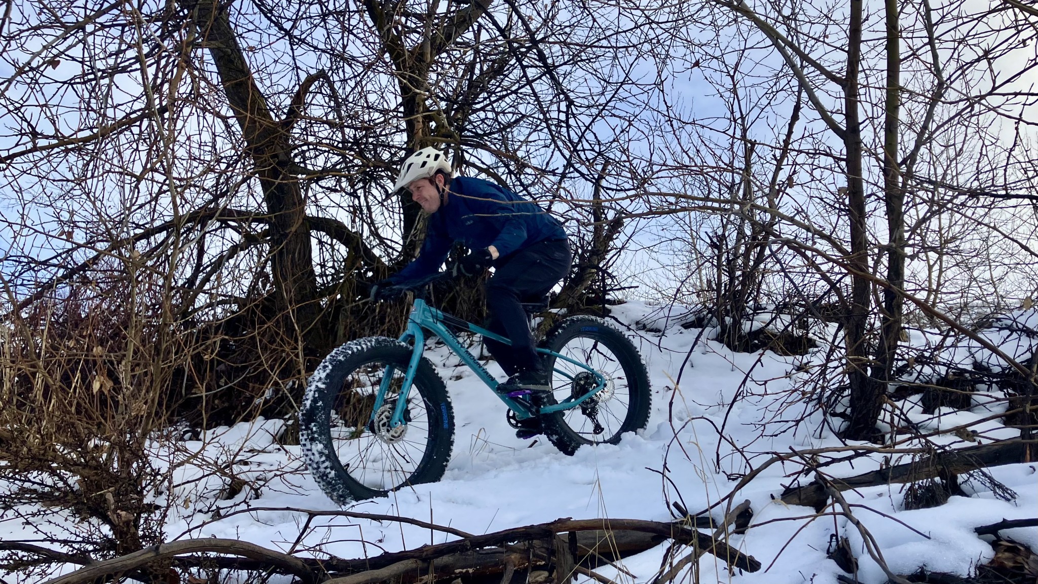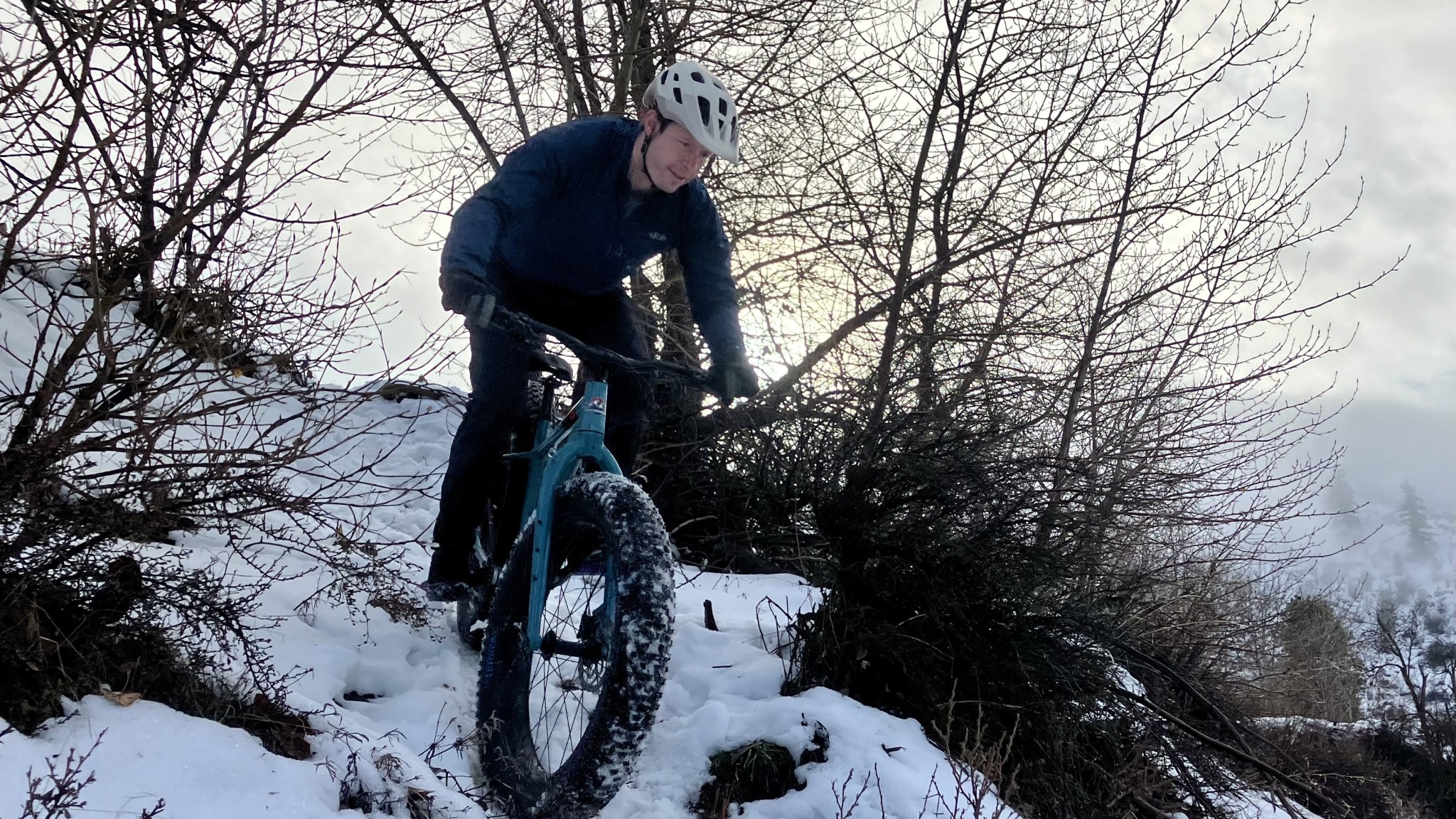 The Blizzard offers decent handling. As previously mentioned, it struggles a bit in tight spaces, but the Terrene Cake Eater 27.5 x 4.5-inch tires respond well to quick and aggressive movements. The braking bite is solid. We landed on about 8 PSI front and rear with these tires to balance the damping properties provided by these enormous tires while avoiding the risk of burping the tires. Once the tire pressure was dialed in, we found the ride to be reasonably compliant. We had the opportunity to ride this bike on some south-facing dirt singletrack during the early winter months. The bike handled quite well, motoring down the buff singletrack. We did find if you dropped the pressure any lower than 8 PSI the steering started to feel heavy and sluggish on dirt sections of the trail.