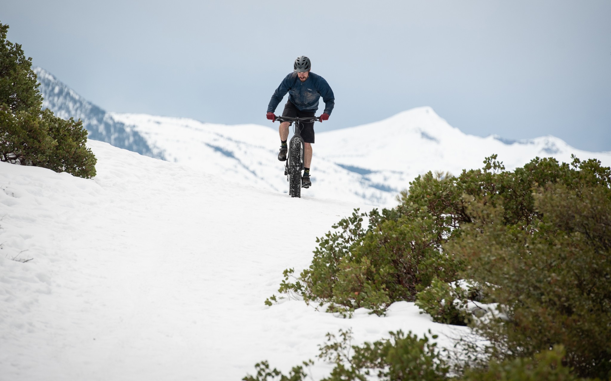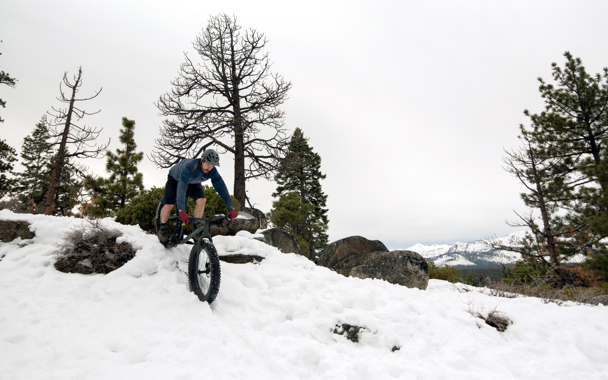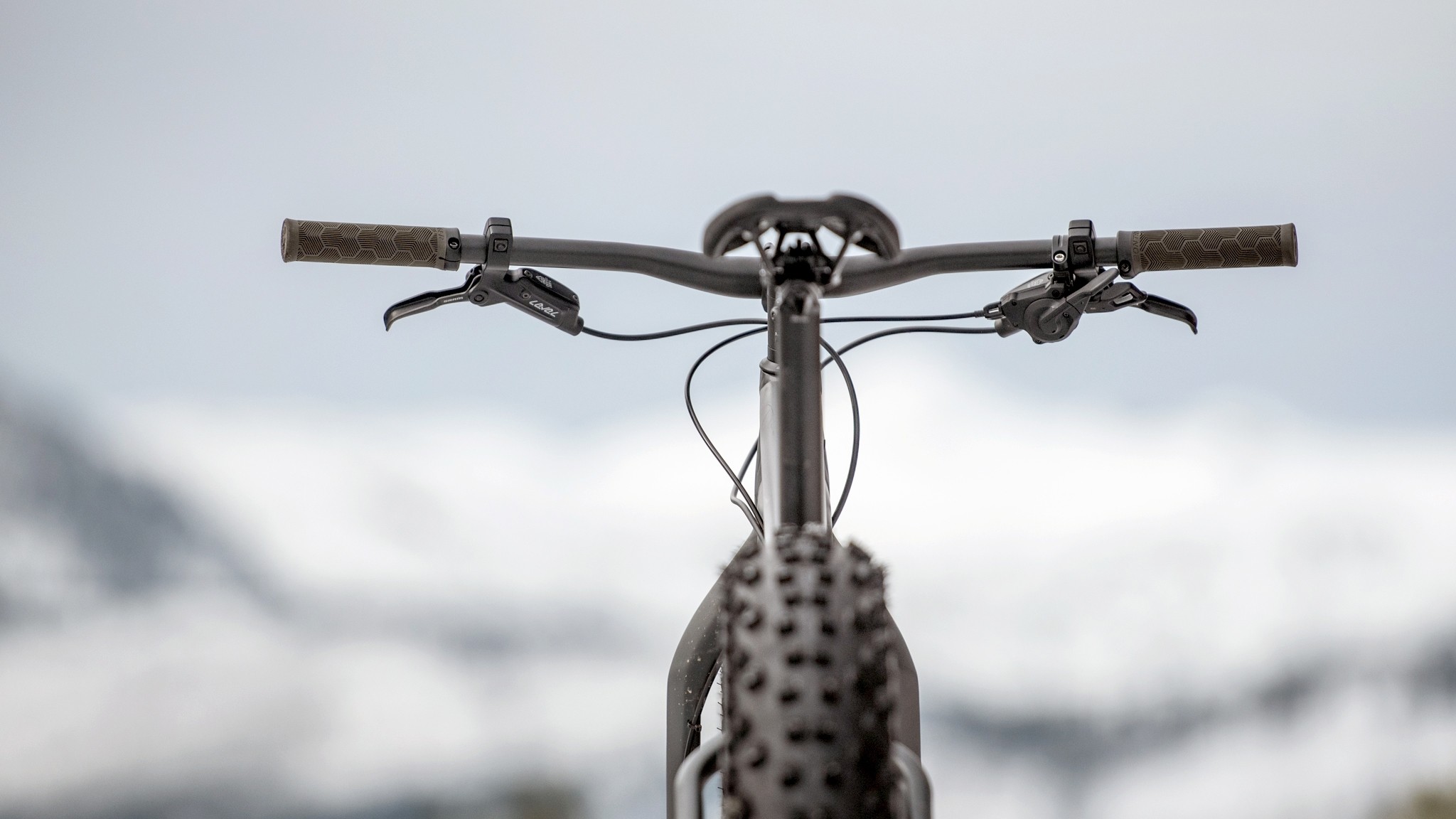 The rider's position while climbing is quite comfortable, with a moderate 446mm reach and a slightly taller front end than some of the competition. The 74.4-degree seat tube angle puts the rider right up on top of the bottom bracket and keeps the weight distributed relatively well for climbing traction. The shorter length wheelbase and 69-degree head angle also give this bike a pretty short turning radius, which helps with tight uphill switchbacks or in case you encounter some tighter more technical climbing. When the climbs get a little steeper, the Shimano Deore 10-speed drivetrain did leave us wanting for another lower gear, but generally speaking, it was fine whenever riding on dirt, and you can't really climb snow that's very steep anyway. All in all, the Farley climbs pretty darn well.