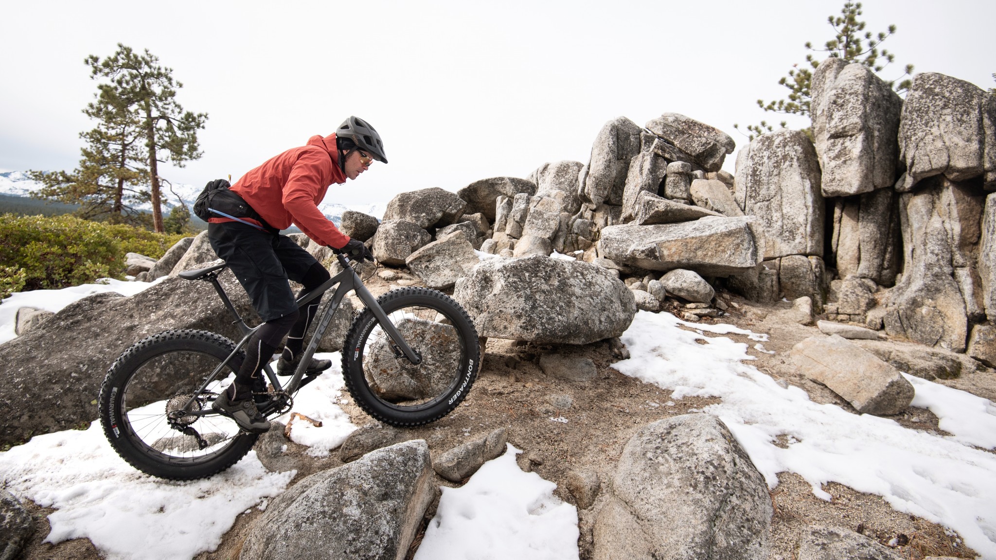 The Farley 5 in its factory build is best suited to snow or very soft surface riding. The massive 4.5" wide Gnarwhal tires are super girthy and provide tons of floatation for use on soft surfaces like snow or sand. Those huge tires also have a meaty tread pattern and grip as well or better than the Maxxis Minion tires found on many of our other test models. Despite this bike's huge tires, it proved not to be a one-trick pony, and we were surprised by its mixed-condition performance and capabilities on dirt and normal trail conditions as well. With limited accessory mounts on the frame and fork, the Farley 5 isn't as well equipped for bike packing or adventure riding as some other models.