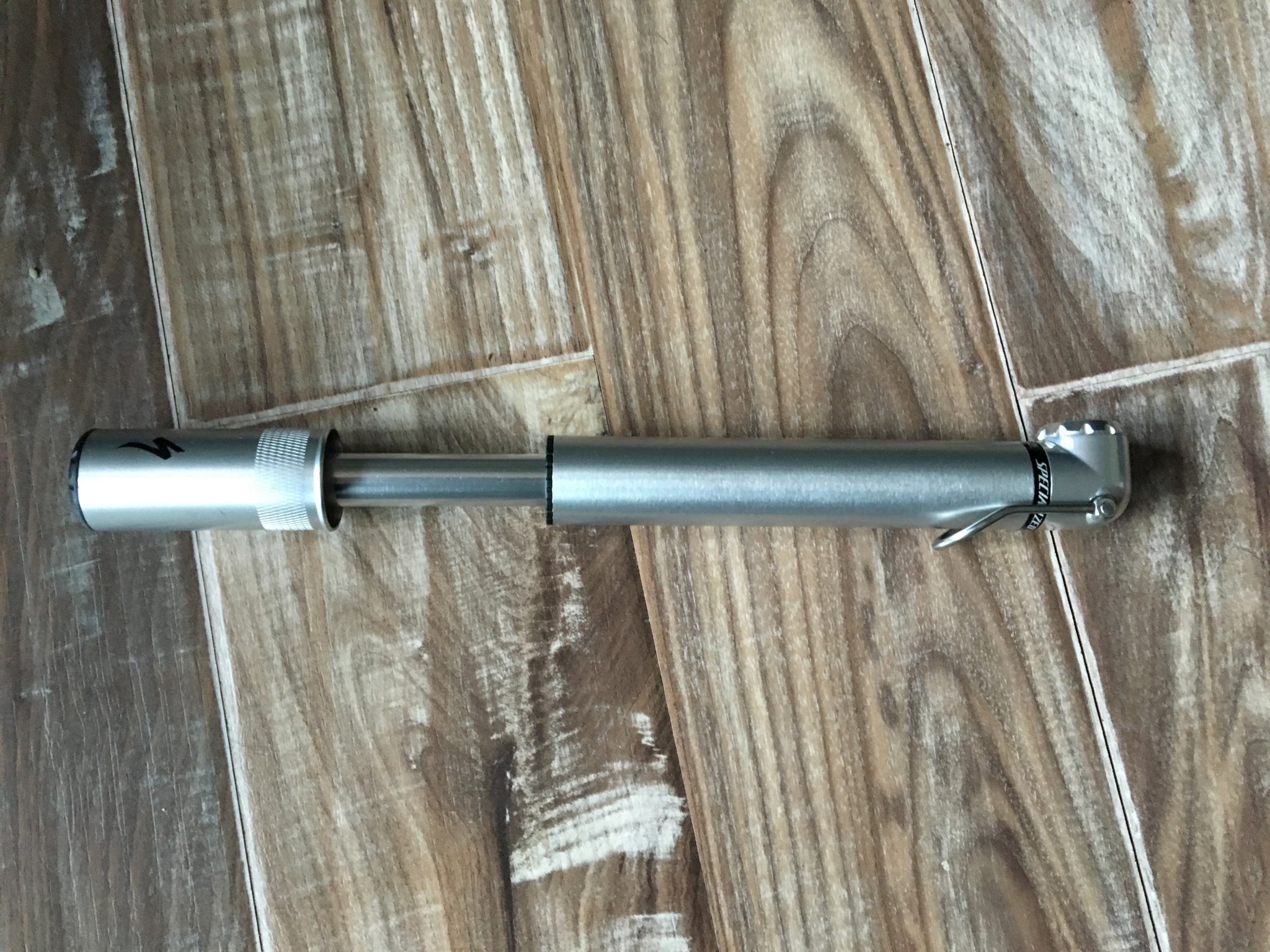 This is a sharp looking pump; it is constructed of aluminum with a raw brushed finish. The locking lever is a simple stainless steel loop with a utilitarian look, and it works well. A rubber gasket inside the pump head is reversible for use on either Presta or Schrader valves. In order to access the gasket, you must unthread a metal ring on the pump head and flip the gasket over to change valve type. This design is not nearly as easy as the reversible hose design of the Lezyne Gauge Drive and Pro Bike Tool High Pressure Pump. We also prefer the flexible hose design of the aforementioned pumps to the integrated head found on the Double Barrel.