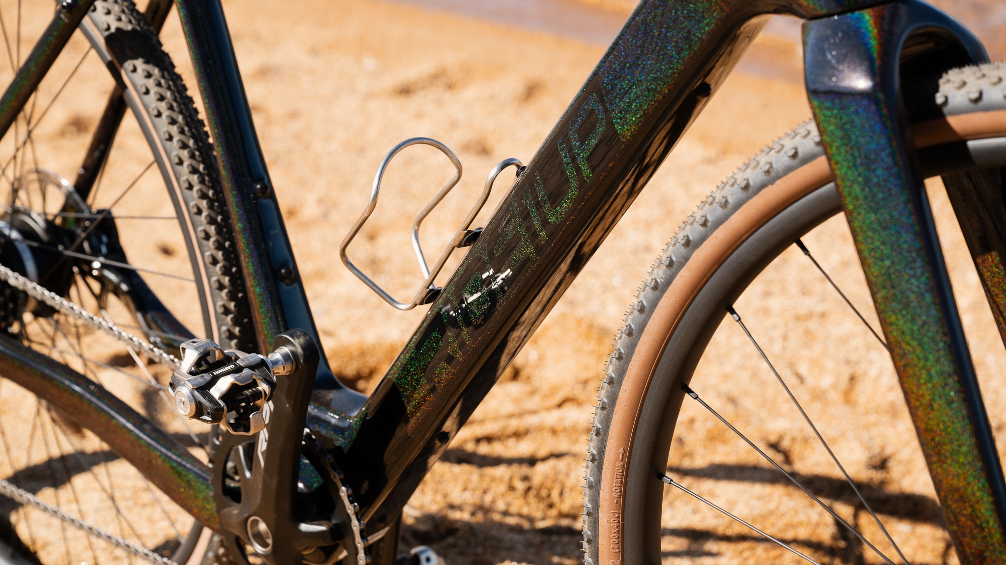 If we were disappointed by anything, it would likely be the wheels and tires. A tubeless compatible rim and more rubber underneath us would have been welcome additions. The Schrader valves and the corresponding large holes in the rims felt like an oversight; we were glad to see the Presta valves in the road-going version. The bike also comes with a pair of fairly basic alloy flat pedals.