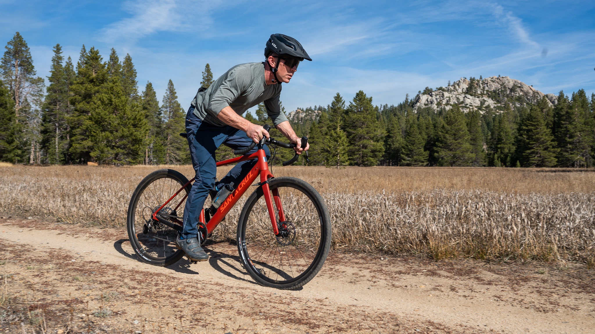 The Apex components contribute to this bike being a solid descender. The levers have a generous uptilt that keeps your hands secure while riding the hoods. Braking is handled by SRAM flat-mount hydraulic calipers and 160mm rotors. Our testers appreciated the smooth modulation and stopping power, whether in the hoods or drops. Wide, flared handlebars are an obvious plus, and the shape of the Zipp bar is conducive to ripping in the drops. We had no complaints about the WTB wheelset, but more aggressive riders or those looking to line up at the start gate might want to check out the carbon offerings. 45mm Maxxis Rambler tires provide ample traction on dirt roads, and the EXO casing stood up well to our abuse. Riders frequenting pavement or smooth, hard-packed dirt roads might find the Rambler tires overkill.