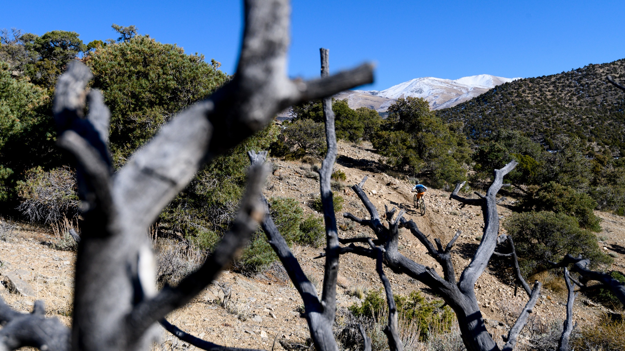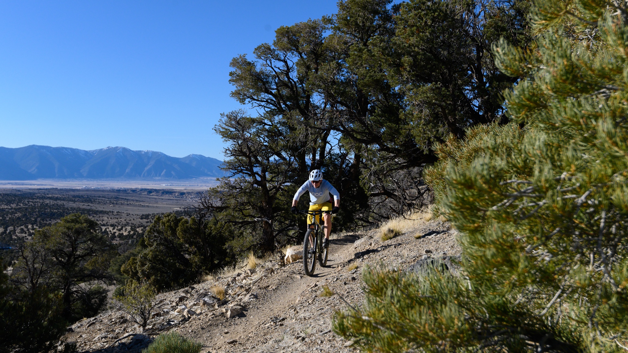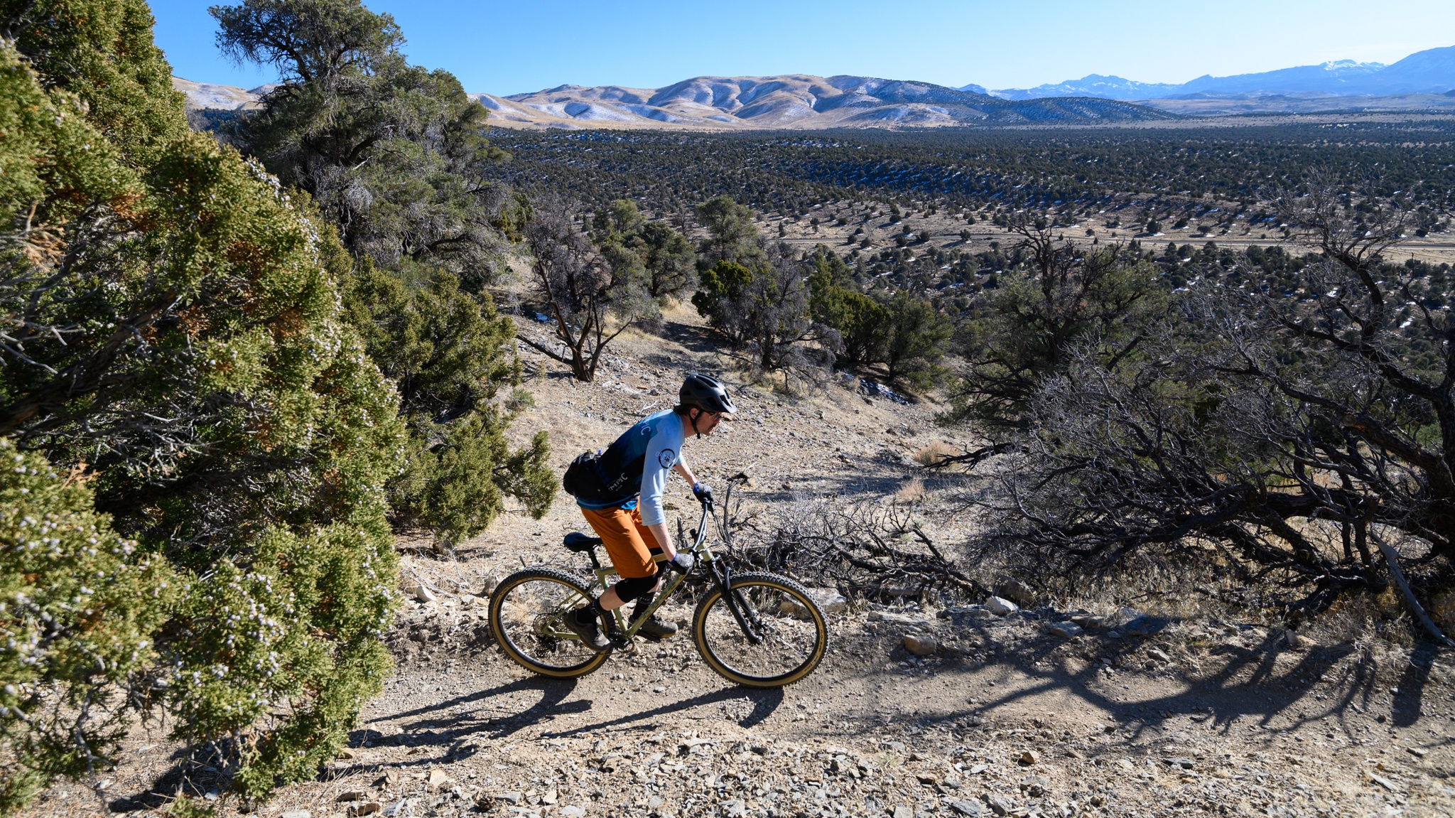 The 2.6-inch tires fared better on the climb than they did on the descent. We did have to somewhat over-inflate them to stiffen the sidewalls, but they hooked up well on the climbs. Damp, loose, hardpack, they delivered a decent amount of grip and rolled reasonably well. The Shimano SLX 12-speed drivetrain is a tremendous specification at this price. It shifted well under load and delivered a huge gear range. This will no doubt come in handy if you are grinding this bike uphill loaded with bikepacking gear.